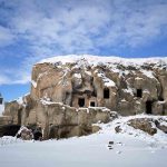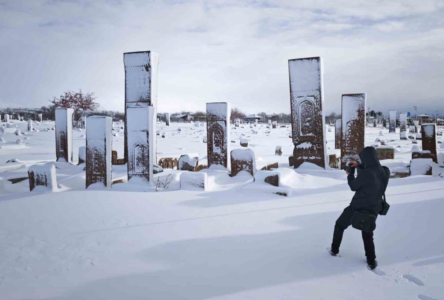 Bitlis’in Ahlat ilçesindeki tarihi yapıların karla bütünleşmesi güzel manzaralar oluşturdu.