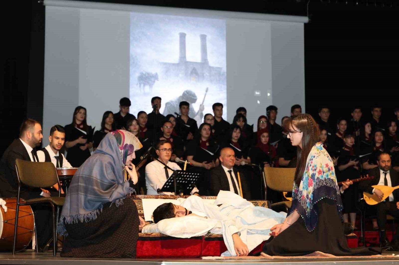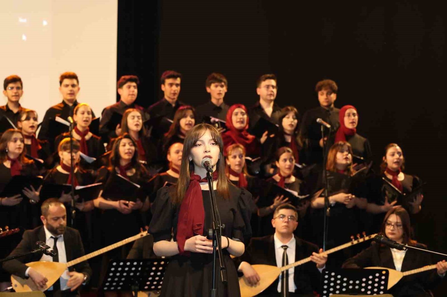 Atatürk Üniversitesi 15 Temmuz Millî İrade Salonu’nda gerçekleştirilen konserde; Erzurum yöresine ait türküler seslendirilirken, yörenin kıymetli âşıkları Rahim Sağlam ve Ali İhsan Yavuzer’e ait eserler öğrenciler tarafından büyük bir başarıyla icra edildi. Türkülerin hikâyeleri sahnede canlandırılırken, yapay zekâ ile hazırlanan görseller izleyicilerden büyük beğeni topladı. Okul öğretmen ve öğrencilerinden oluşan koro ve saz ekibi, performanslarıyla izleyenlere duygu dolu anlar yaşattı.