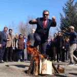 Halk oyunları gösterisi ile devam eden etkinlikte protokol üyeleri, örste demir dövüp, boyalı yumurta tokuşturdu. Nevruz ateşinin yakılmasıyla katılımcılar ateşin üstünden atladı, ardından halay çekti.
