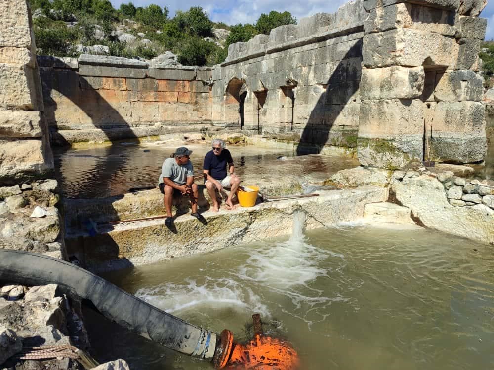 “Toprakları açtıkça orijinal kaynak suları gelmeye başladı. Farklı noktalardan sürekli su doluyordu. Büyük pompalarla her gün suları tahliye ettik, kazdık; gece yeniden doldu, sabah tekrar boşalttık. Bu döngüyle ilerledik ve ancak bu seviyeye gelebildik. Çalışmalar sırasında, ortaya çıkarılan mil duvarların korunması ve çevreden gelen yüzey sularının alanı yeniden doldurmaması için yapının çevresi yaklaşık iki buçuk metre yüksekliğinde koruyucu bir engel duvarla çevrildi.”