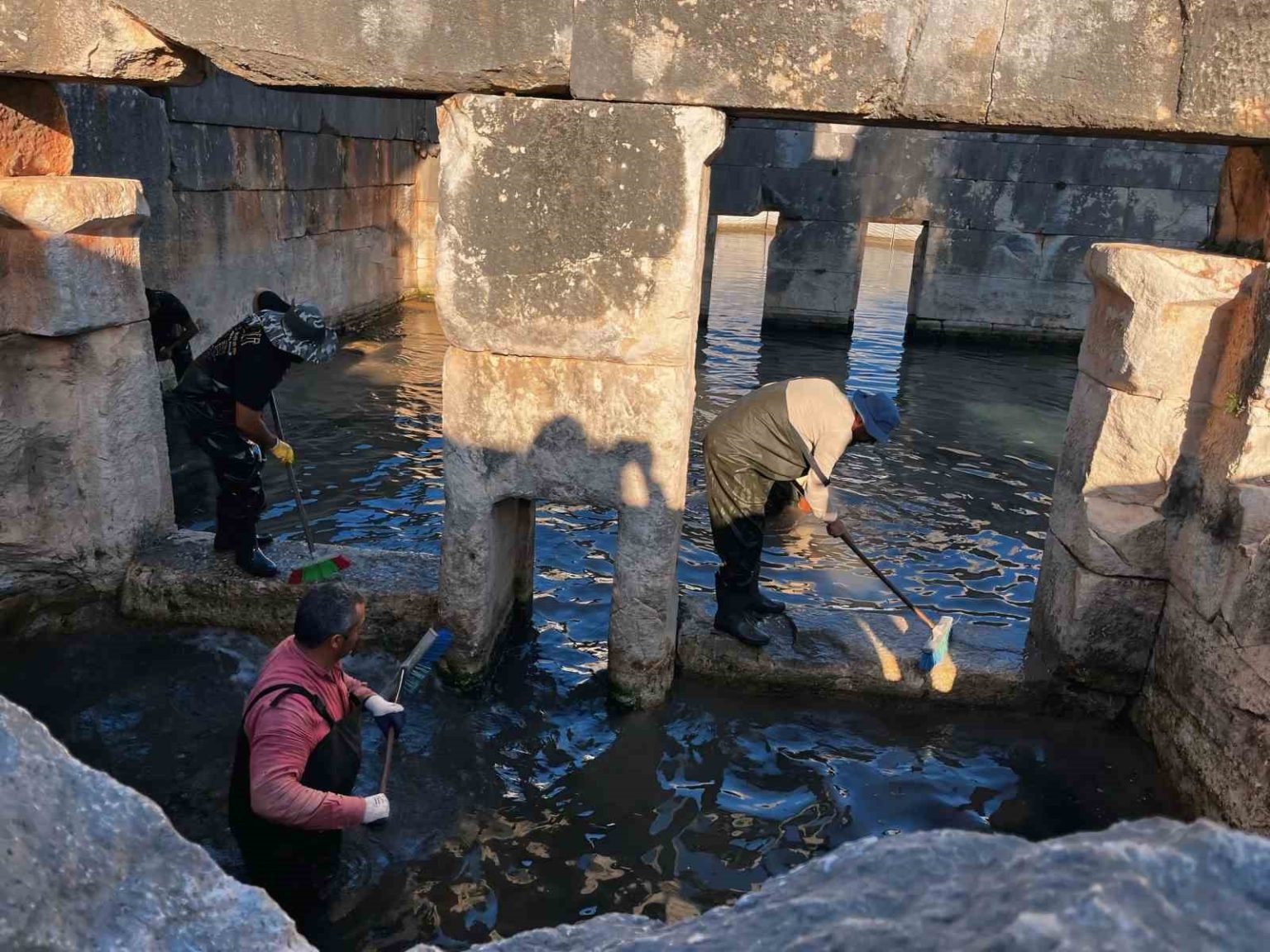 Myra Antik Kenti ile Andriake arasında, uzun yıllar Demre’nin eski sanayi bölgesi olarak kullanılan alanda yer alan antik su yapısındaki çalışmalar, sanayi faaliyetlerinin sona erdirilmesi ve yapıların tamamen kaldırılmasının ardından hız kazandı. Alanın temizlenmesiyle birlikte, toprak altında kalan ve sürekli su alan yapı kademeli olarak ortaya çıkarılıyor.