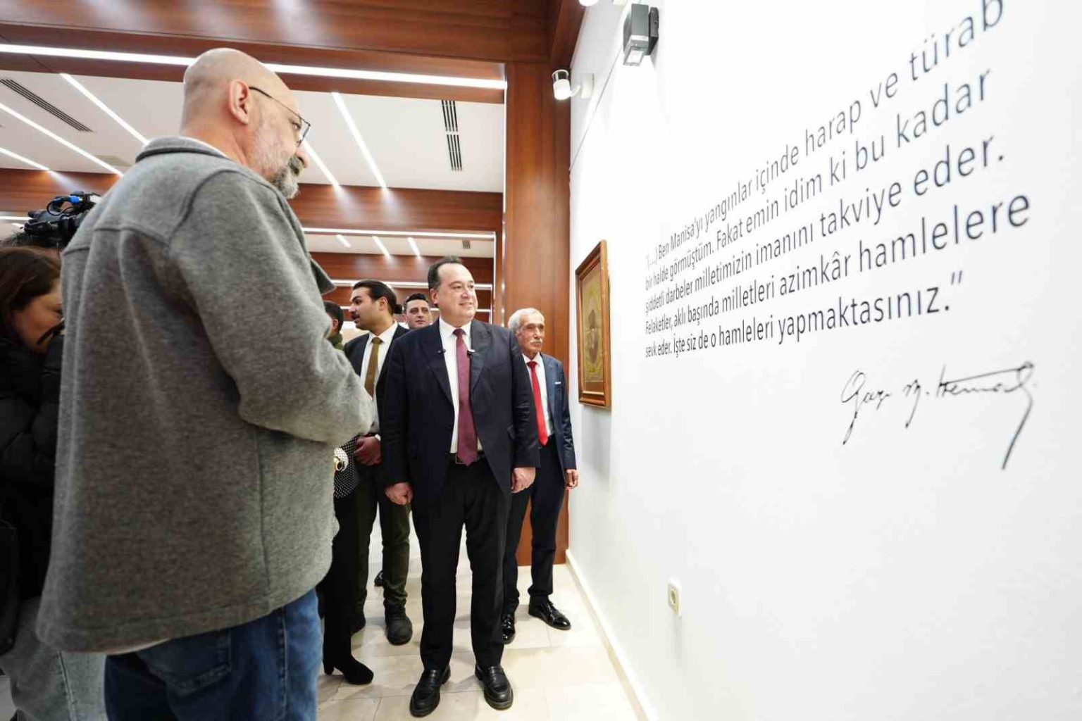 Manisa Büyükşehir Belediyesi’nin ev sahipliğinde açılan “Sarışın Bir Kurt: Mustafa Kemal Atatürk” sergisi, Gazi Mustafa Kemal Atatürk’ün 1907-1938 yılları arasındaki liderlik yolculuğunu orijinal belgeler, fotoğraflar ve tarihi dokümanlarla gözler önüne seriyor.