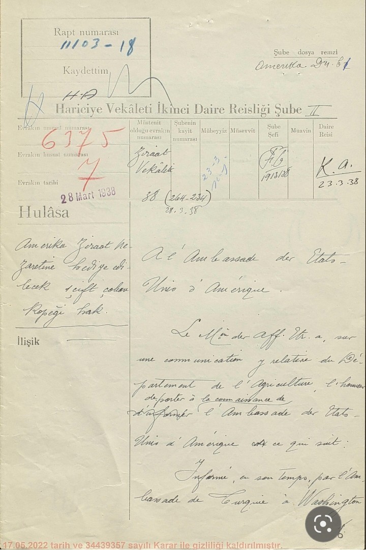 ABD Tarım Bakanı Henry Wallace’ın girişimiyle başlayan sürecin, Türkiye’nin Washington Büyükelçisi Mehmed Münir Ertegün aracılığıyla Ankara’ya taşındığını vurgulayan Özdemir, daha sonra şöyle dedi “Süreç Atatürk’ün onayıyla sonuçlanmıştır. O dönemde köpek ihracatı yasak olmasına rağmen, bu iki köpek istisnai bir diplomatik jest olarak ABD’ye gönderilmiştir. Makale, köpeklerin ABD’de bilimsel testlere tabi tutulduğunu ve II. Dünya Savaşı sırasında ABD Donanması tarafından Maryland’de bulunan bir telsiz istasyonunun korunmasında kullanıldığını ortaya koymaktadır. Bu yönüyle Erzurumlu çoban köpekleri, hem diplomatik hem askerî tarihte dikkat çekici bir örnek oluşturmaktadır. Bu hikaye aynı zamanda Anadolu’dan dünyaya uzanan sessiz ama etkili bir tarihsel bağın somut göstergesidir.”