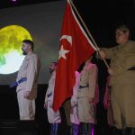 Anadolu’nun yedi bölgesinden halk dansları örnekleriyle harmanlanan gösterimde sahnedeki öğretmen ve öğrenciler Çanakkale Destanı’nı yazan Mehmetçiğin ailesinden ayrılması ve uğurlanmasına ait sahnelerde izleyenlere duygu dolu anlar yaşattı.