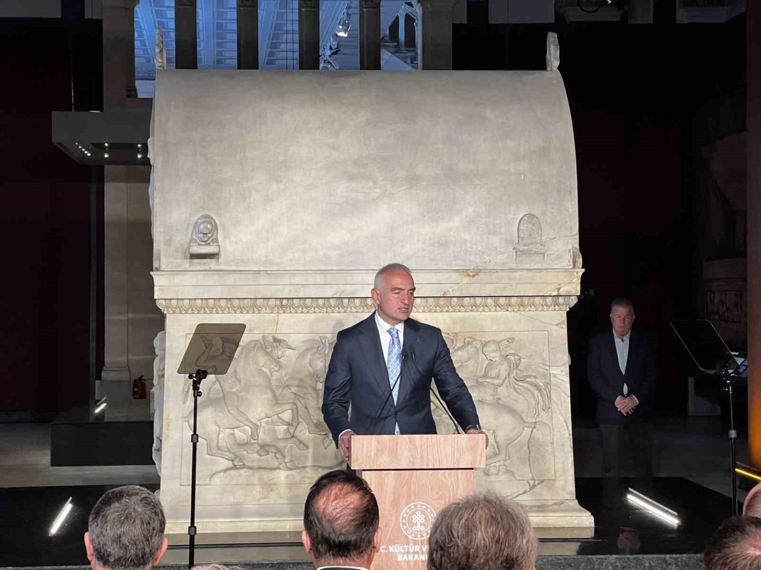 Melek Heykelinin teslim edilmesine ilişkin konuşan Bakan Ersoy, “İstanbul Fener Rum Patrikliği’ne çok değerli bir kültür varlığını, bir melek figürünü iade etmek üzere buradayız. Bu güzel birlikteliği değerlendirip, bu toprakların mirasına sahip çıkma noktasında Bakanlık olarak neler yaptığımızı da anlatmak, merak edilen hususlara açıklık getirmek istedik. Malumunuz kültür varlıkları denilince akla gelen ilk bilim dalı arkeolojidir. Ve maalesef bu dal, bilhassa 18. ve 19. yüzyıllarda özellikle Avrupa devletlerinin arkeolojiye ilişkin politik ve stratejik yaklaşımlarının etkisi diğer ülkeleri ciddi oranda mağdur etmiş ve pek çok eser izinsizce ve bir talan yaklaşımıyla yurtlarından koparılmıştır. Osmanlı Devleti de o dönem kendi sınırları içerisinde kalan tüm eserleri korumanın tek yolunun bir müze kurmak olduğunu görmüş; ekonomik bakımdan zor bir süreçten geçmesine rağmen gerekli yatırımı yaparak 1869 yılında Müze-i Hümayun’u, bugünkü adıyla İstanbul Arkeoloji Müzelerini kurmuştur” dedi.