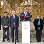 Kültür ve Turizm Bakanı Mehmet Nuri Ersoy, Ayasofya-i Kebir Cami-i Şerifi ve Sultanahmet Camii’nde yürütülen restorasyon çalışmaları ilgili basın açıklaması yaptı. Ayasofya-i Kebir Cami-i Şerifi’nde düzenlenen açıklamada Bakan Ersoy’a İstanbul Valisi Davut Gül, Ayasofya Bilim Kurulu Üyeleri Prof. Dr. Ahmet Güleç, Prof. Dr. Hasan Fırat Diker, Prof. Dr. Asnû Bilban Yalçın ve Doç. Dr. Mehmet Selim Ökten eşlik etti.