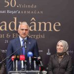 Kültür ve Turizm Bakanı Mehmet Nuri Ersoy, Ankara Resim ve Heykel Müzesi’nde açılan ‘50. Yılında, Fuat Başar’a Armağan Fuadname Hat ve Ebru Sergisi’nin açılışına katıldı. Ersoy, sergi alanını gezerek eserleri inceledi ve eserlerin sahibi Fuat Başar’dan çalışmalar hakkında bilgi aldı. Hat ve ebru sanatının geleneksel Türk sanatları içerisindeki önemine dikkat çeken Ersoy, bu tür sergilerin kültürel mirasın yaşatılması ve gelecek nesillere aktarılması açısından büyük değer taşıdığını ifade etti. Sergide yer alan eserlerin, klasik hat sanatının zarafetini ve ebru sanatının estetik derinliğini yansıttığını dile getiren Ersoy, Fuat Başar’ı bu eserler için tebrik etti. Fuat Başar’ın 50 yıllık bilgi birikimini, hat ve ebru sanatına yansıttığını vurgulayan Ersoy, bu eserlerin sanat dünyasına geniş bir pencere sunduğunu sözlerine ekledi.
