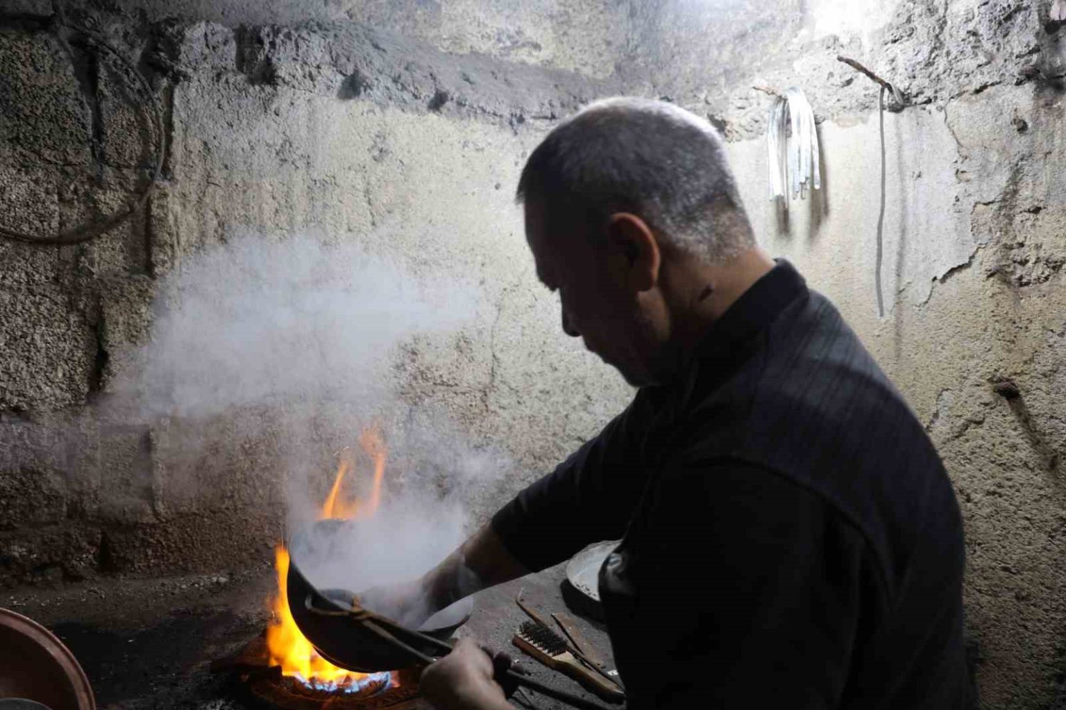 Mesleğini ailesinden devraldığını belirten bakır ustası Remzi Karaoğlan, “Önceden 15’e yakın bakırcı, 20’nin üzerinde kalaycı vardı. Şimdi tek bakırcı kaldım, iki kalaycı var. Eskiden burada insanlar birbirinden geçemezdi, çarşı çok yoğundu ama şimdi o günlerden eser yok” dedi.