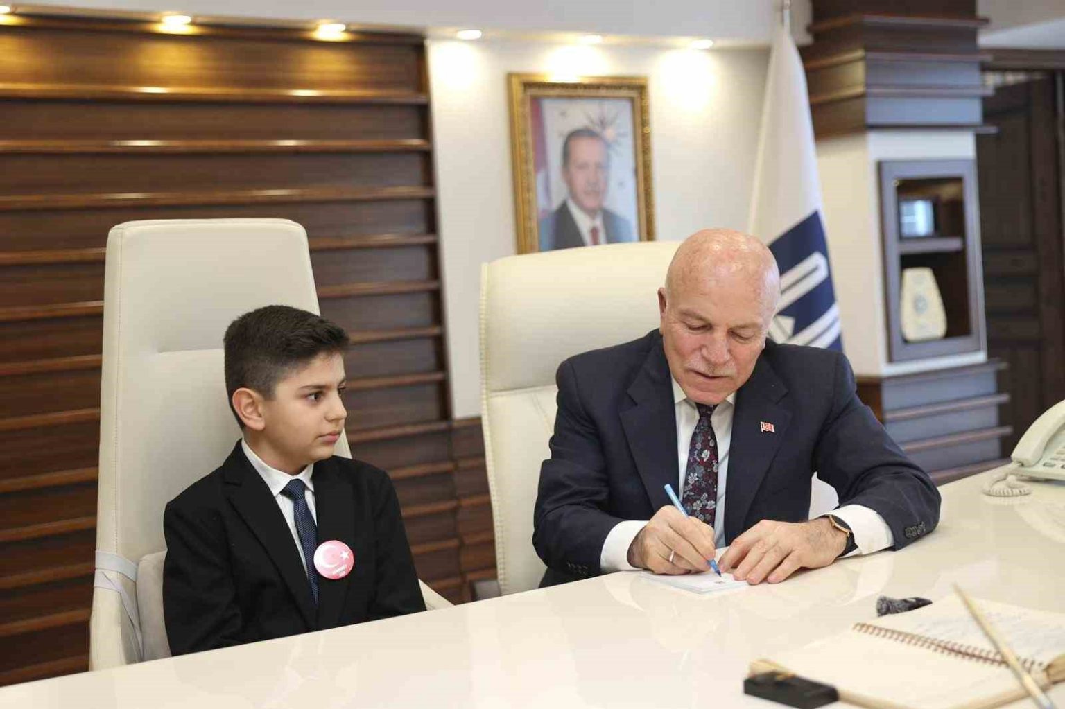 23 Nisan Ulusal Egemenlik ve Çocuk Bayramı kapsamında temsili olarak koltuğunu Yıldızkent Ortaokulu öğrencisi Mahmut Alp Sarıca bırakan Erzurum Büyükşehir Belediye Başkanı Mehmet Sekmen, “Gözümüzün nuru, geleceğimizin umudu çocuklarımıza makamımızı teslim etmenin mutluluğunu yaşıyoruz” dedi.