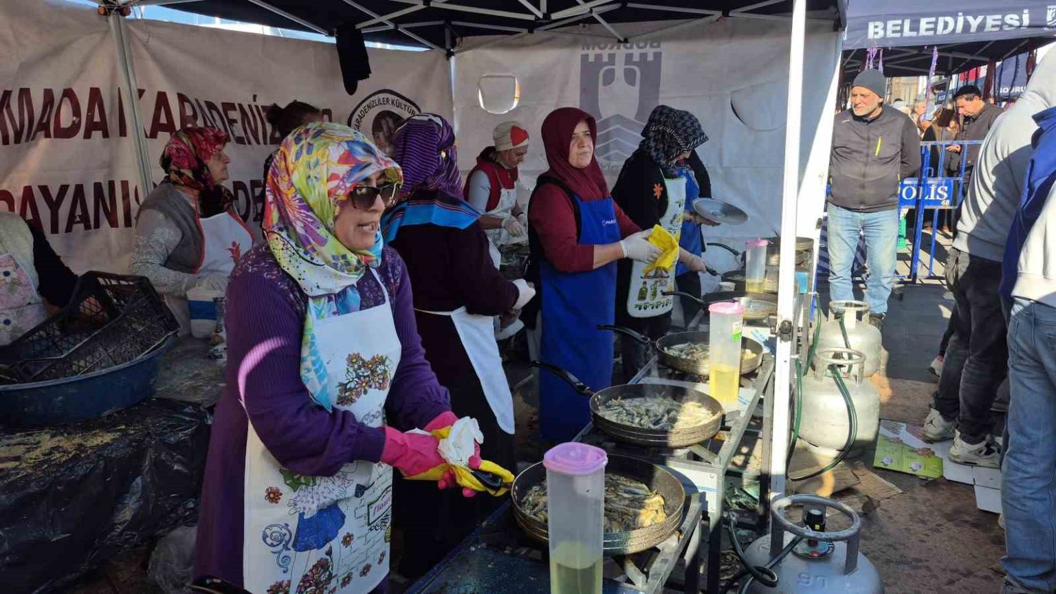 Bodrum Yarımada Karadenizliler Kültür ve Dayanışma Derneği tarafından geleneksel hale getirilen Bodrum Hamsi Festivali, İskele Meydanı’nda düzenlendi. Öğle saatlerine doğru başlayan festival her yıl olduğu gibi renkli görüntülere sahne oldu. Binlerce kişinin katıldığı festivalde 3 ton hamsi tavalarda mısır unuyla pişirilerek vatandaşlara dağıtıldı. Hamsi almak isteyen vatandaşlar, 100 metreyi aşan kuyruk oluşturdu. Bodrum Belediye Başkanı Tamer Mandalinci vatandaşlara ekmek arası hamsi dağıttı.