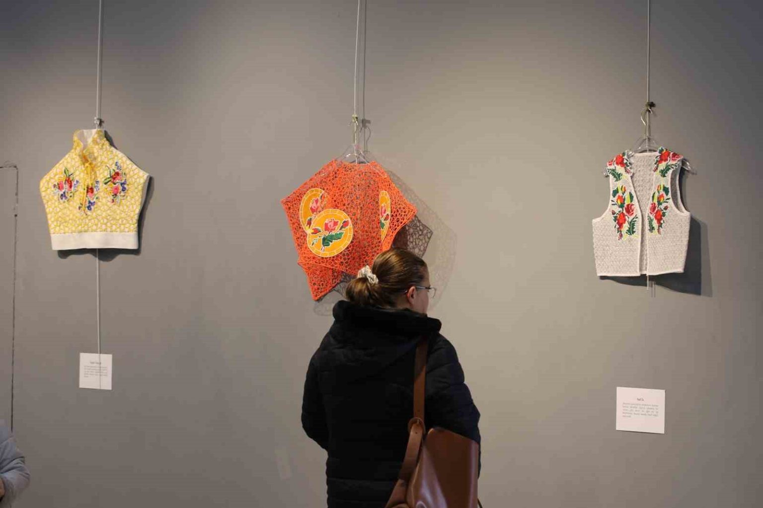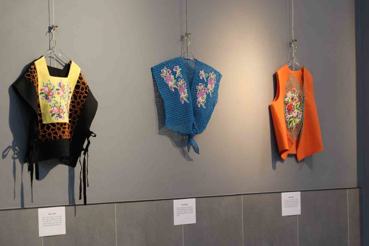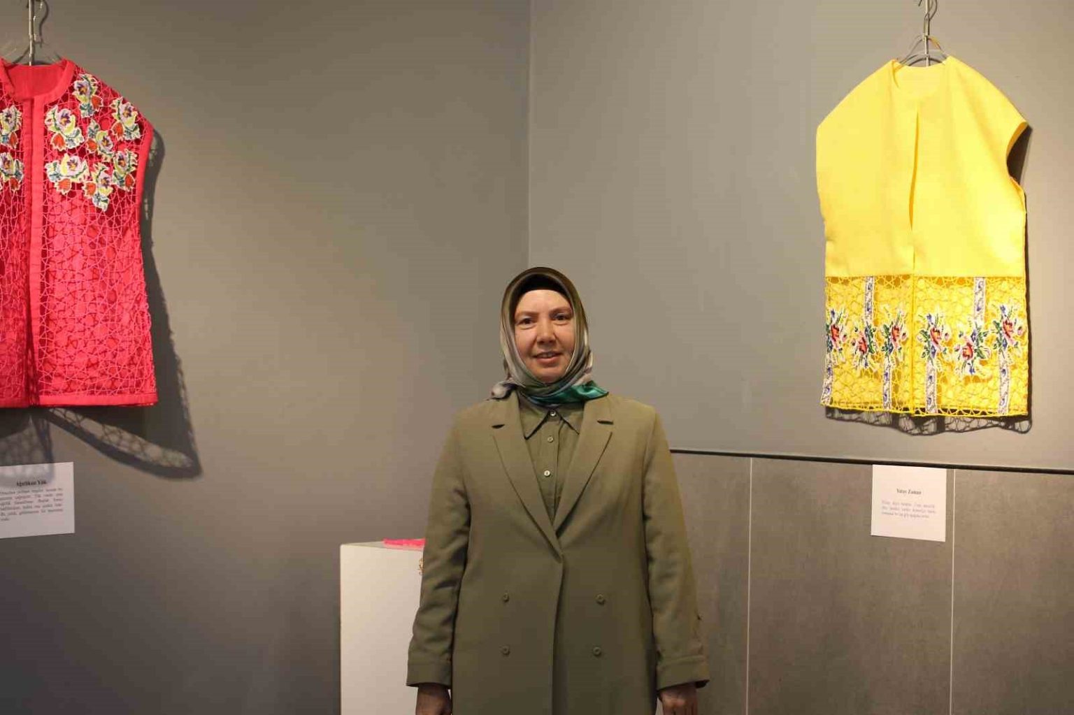 Sergide yer alan 17 yelekte eski kanaviçe parçalarını kullandığını belirten Aygün, “Sergide yer alan 17 yelekte eski kanaviçe parçalarını kullandım ve bu parçalar aynı zamanda yalnızca bir motif değil, sabrın ve zamanın taşıyıcılarıdır. Yelek formunu özellikle seçtim. Bir bedeni bekleyen bir formdur ama bu sergide beden yok, boşluk var. Boşluk burada sessiz değil, taşıyıcı ve hatırlayan. Ne tamamen eski, ne tamamen yeni. Tıpkı hafıza gibi” ifadelerini kullandı.