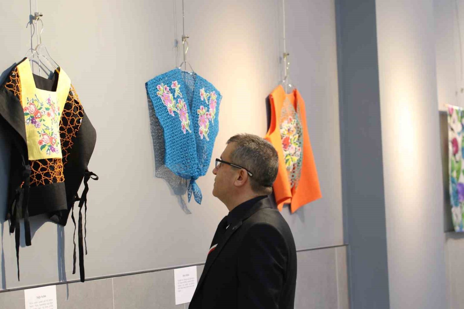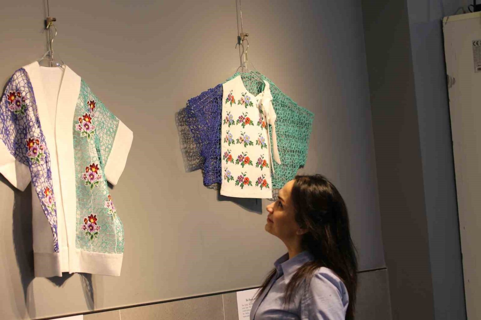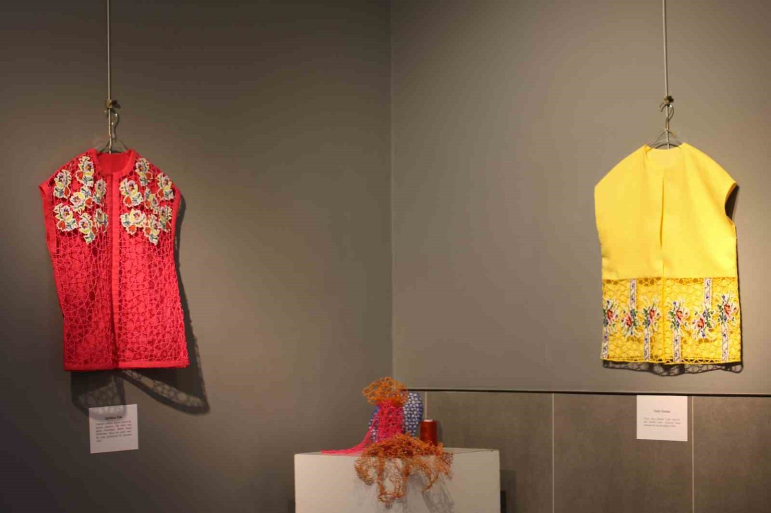 Sergide yer alan 17 yelekte eski kanaviçe parçalarını kullandığını belirten Aygün, “Sergide yer alan 17 yelekte eski kanaviçe parçalarını kullandım ve bu parçalar aynı zamanda yalnızca bir motif değil, sabrın ve zamanın taşıyıcılarıdır. Yelek formunu özellikle seçtim. Bir bedeni bekleyen bir formdur ama bu sergide beden yok, boşluk var. Boşluk burada sessiz değil, taşıyıcı ve hatırlayan. Ne tamamen eski, ne tamamen yeni. Tıpkı hafıza gibi” ifadelerini kullandı.