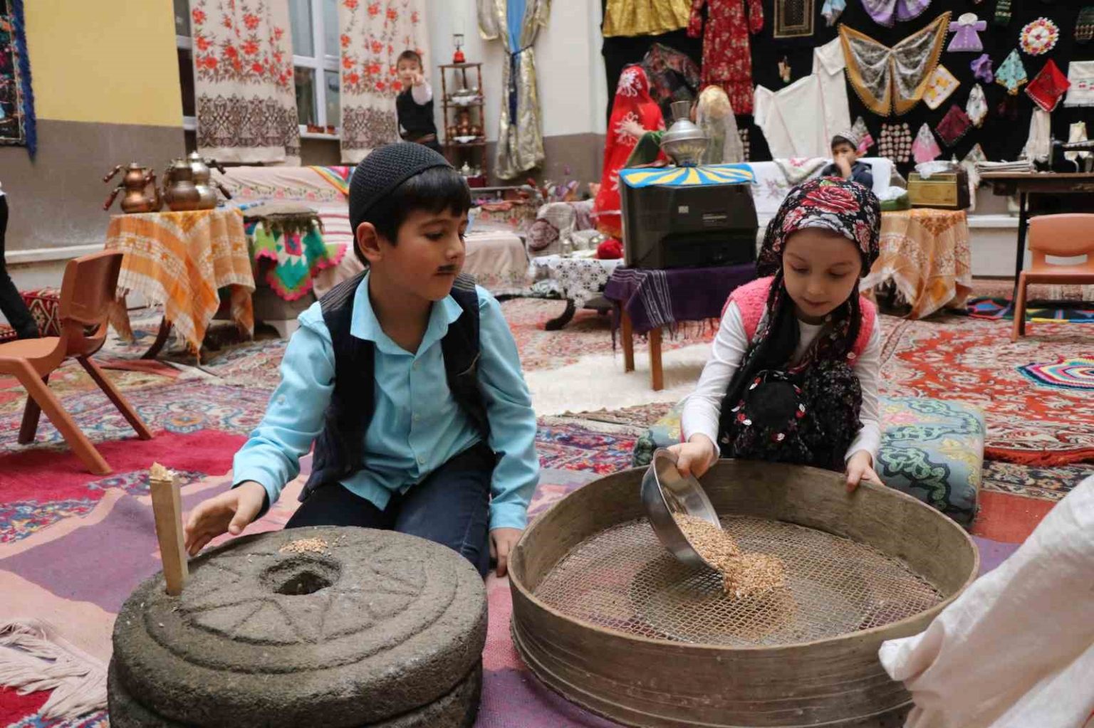 Okulun mimarisine kazandırılan yeni alanda kurulan müzede, 1970 ve 1980’li yılların Bolu yöresel kıyafetlerini giyen minik öğrenciler, adeta zamanı geriye sardı. Öğrenciler, hazırlanan özel dekorlar eşliğinde buğday öğütme, yün eğirme, halı dokuma ve yöresel çeyiz hazırlama gibi unutulmaya yüz tutmuş geleneksel el sanatlarını uygulamalı olarak canlandırdı. Miniklerin performansı, veliler ve öğrenciler tarafından ilgiyle izlendi.