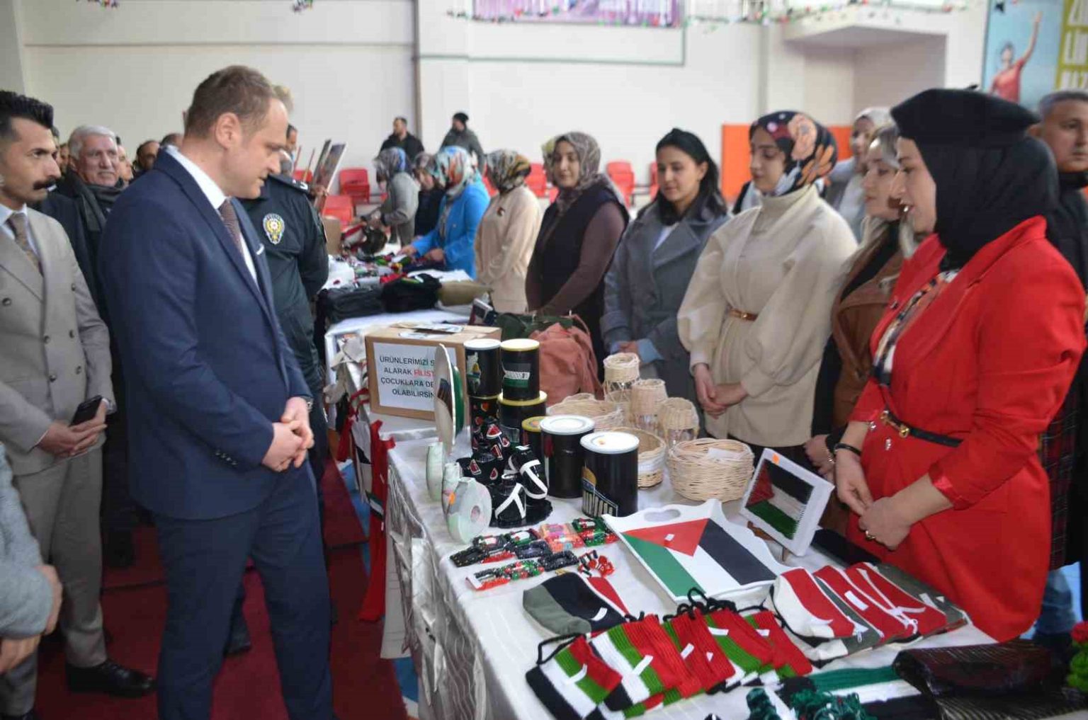 İsrail’in zulüm ve soykırımına maruz kalan mazlum Filistin halkına ve özellikle çocuklara destek olmak amacıyla düzenlenen etkinlikte, Bulanık Sosyal Yardımlaşma ve Dayanışma Vakfı bünyesindeki kurslarda eğitim alan kursiyerlerin el emeği göz nuru ürünleri sergilendi.