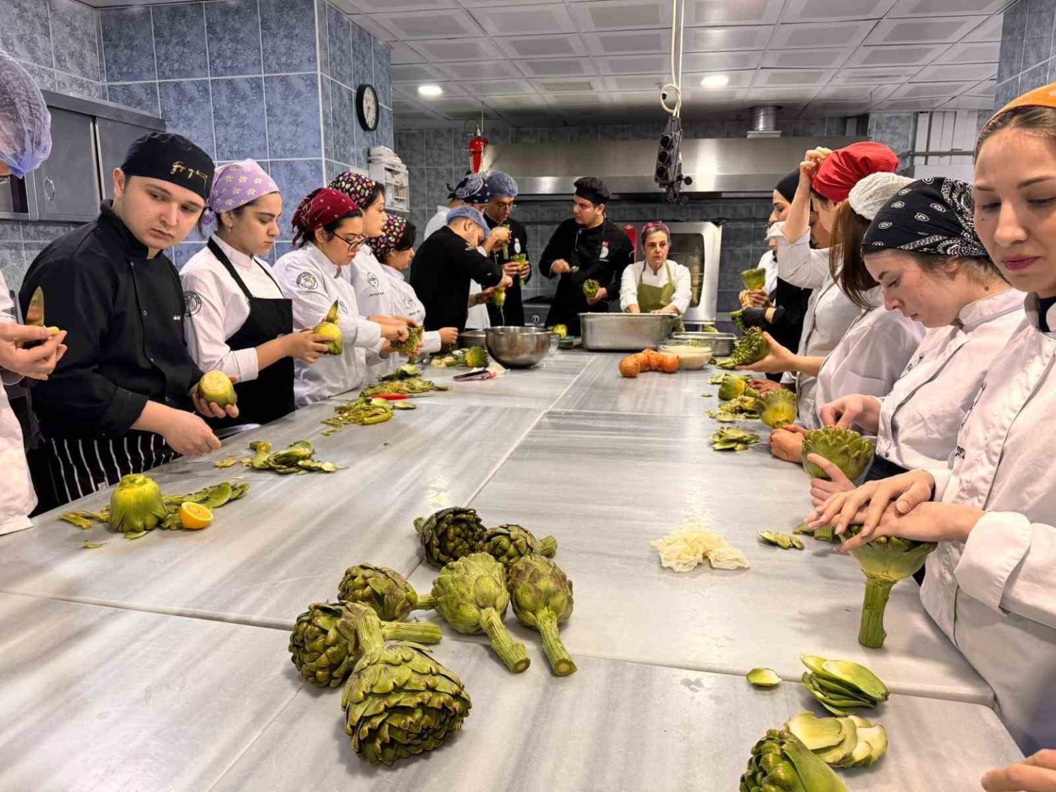 Uygulamalı Bilimler Fakültesi Mutfağındaki etkinlikte, gastronomide sürdürülebilirlik yaklaşımının önemli bir parçası olan yerel ve nitelikli ürün kullanımına dikkat çekilerek öğrencilerin bu bilinçle değerlendirme yapmaları hedeflendi. İlk aşamada öğrenciler, farklı coğrafyalarda yetiştirilen üç ayrı zeytinyağını tanıma ve değerlendirme fırsatı buldu. Ayvalık, Yamalak Sarısı ve Trilye zeytinlerinden elde edilen zeytinyağlarının aroma, koku ve tat özellikleri karşılaştırmalı olarak incelendi. Tadım sürecinin ardından öğrenciler üç gruba ayrılarak uygulama aşamasına geçti. Her grup, farklı zeytinyağları kullanarak enginar dolması hazırladı. Uygulama boyunca öğrenciler, kullanılan zeytinyağlarının yemeğe kattığı aroma, lezzet ve karakter farklılıklarını birebir deneyimleme fırsatı bulurken, aynı yemeğin farklı ürünlerle nasıl değişebildiğini gözlemledi. Bu süreç, uygulamalı öğrenme deneyimini zenginleştirerek mesleki becerilerinin gelişimine katkı sundu. Fakülte Dekanı Prof. Dr. M. Oğuzhan İlban, etkinliğe ilişkin yaptığı değerlendirmede, zeytinyağının gastronomide temel ve belirleyici bir unsur olduğunu vurgulayarak, farklı yörelere ait zeytinyağlarının tanınmasının öğrenciler açısından önemli bir kazanım olduğunu ifade etti. İlban, sürdürülebilir gastronomi bilincinin bu tür uygulamalarla güçlendiğini belirterek, öğrencilerin çevreye duyarlı yaklaşımı deneyimlemesinin önemine dikkat çekti. Gerçekleştirilen tadım ve uygulama sürecinin, öğrencilerin ürünler arasındaki tat ve aroma farklarını ayırt edebilme becerilerini geliştirdiğini ve mesleki yetkinliğe doğrudan katkı sağladığını dile getirdi. Etkinlik sonunda Fakülte Dekanı Prof. Dr. M. Oğuzhan İlban, değerli paylaşımları ve eğitime sunduğu katkılardan dolayı Şef Aylin Yazıcıoğlu’na teşekkür belgesi takdim etti. Gerçekleştirilen etkinlik, öğrencilerin zeytinyağına ilişkin duyusal analiz becerileri ile ürün bilgisini geliştirdiği ve uygulamalı mutfak deneyimi kazandığı verimli bir eğitim olarak tamamlandı.