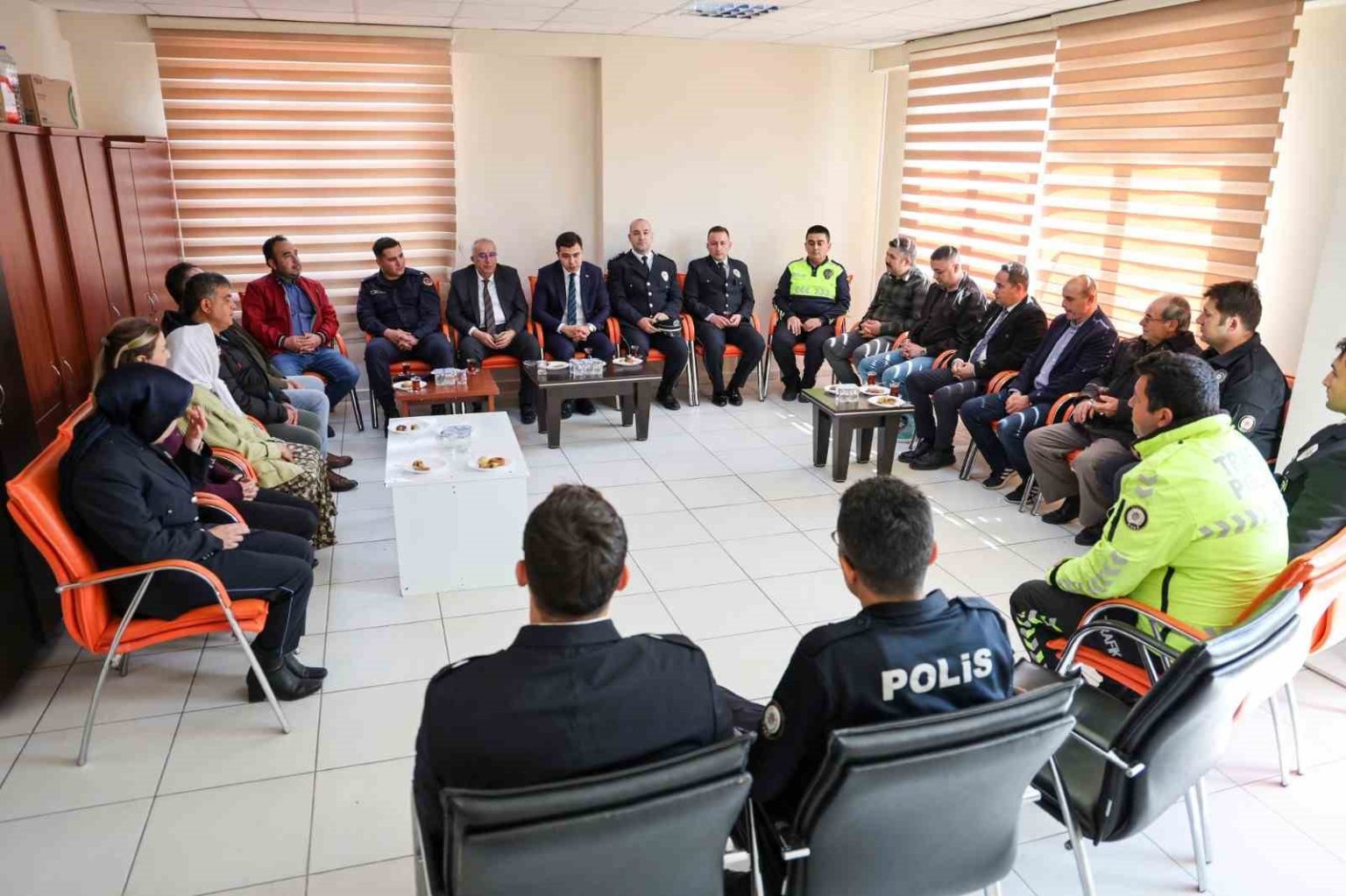 Ziyarette İlçe Emniyet Amiri Bilal Cingör, ilçede yürütülen asayiş ve güvenlik çalışmaları hakkında Kaymakam Çelik ve Başkan Arslan’a bilgi verdi. Samimi bir ortamda gerçekleşen ziyarette, emniyet teşkilatının özverili çalışmaları takdirle karşılandı.