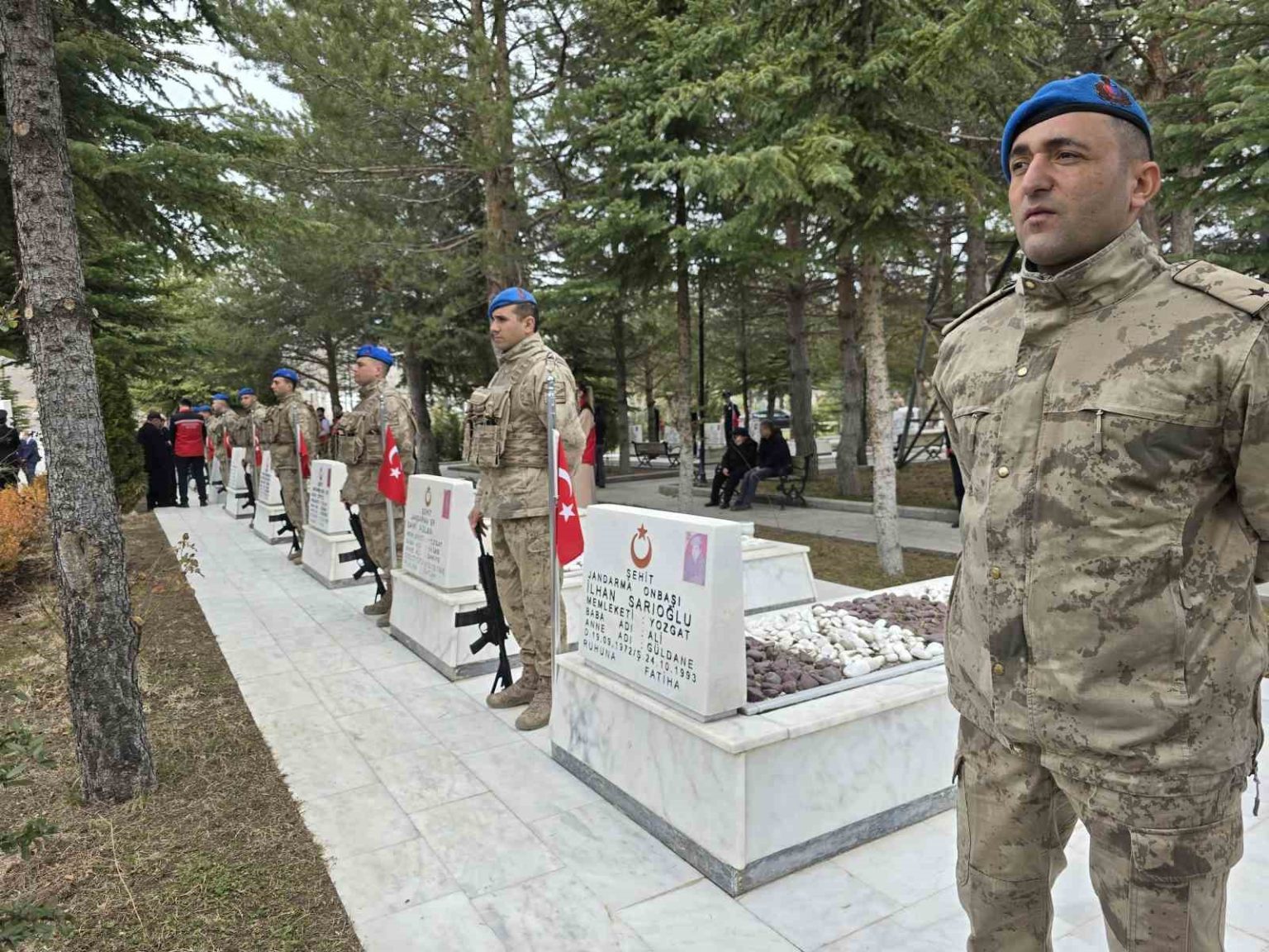 Saygı atışının ardından Kuran-ı Kerim okunarak dualar edildi. Şehitlerin kabirlerini ziyaret eden Vali Özkan, kabirlere karanfil bıraktı.
