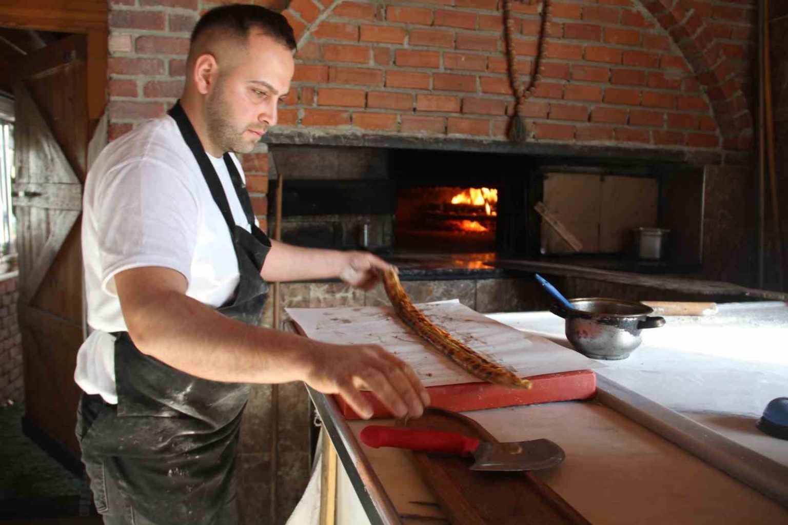 Pidenin kıvamını yakalaması için mutlaka 250 derecede pişmesi gerektiğini belirten Gülşen, “Pidenin önce hamuru yoğurulur, kendi hamurumuz. Sıvı ve sulu hamurdur. Yağına ve tuzuna dikkat edilmeli. 250 derecede pişmesi. Buna dikkat edilmeli” diye konuştu.