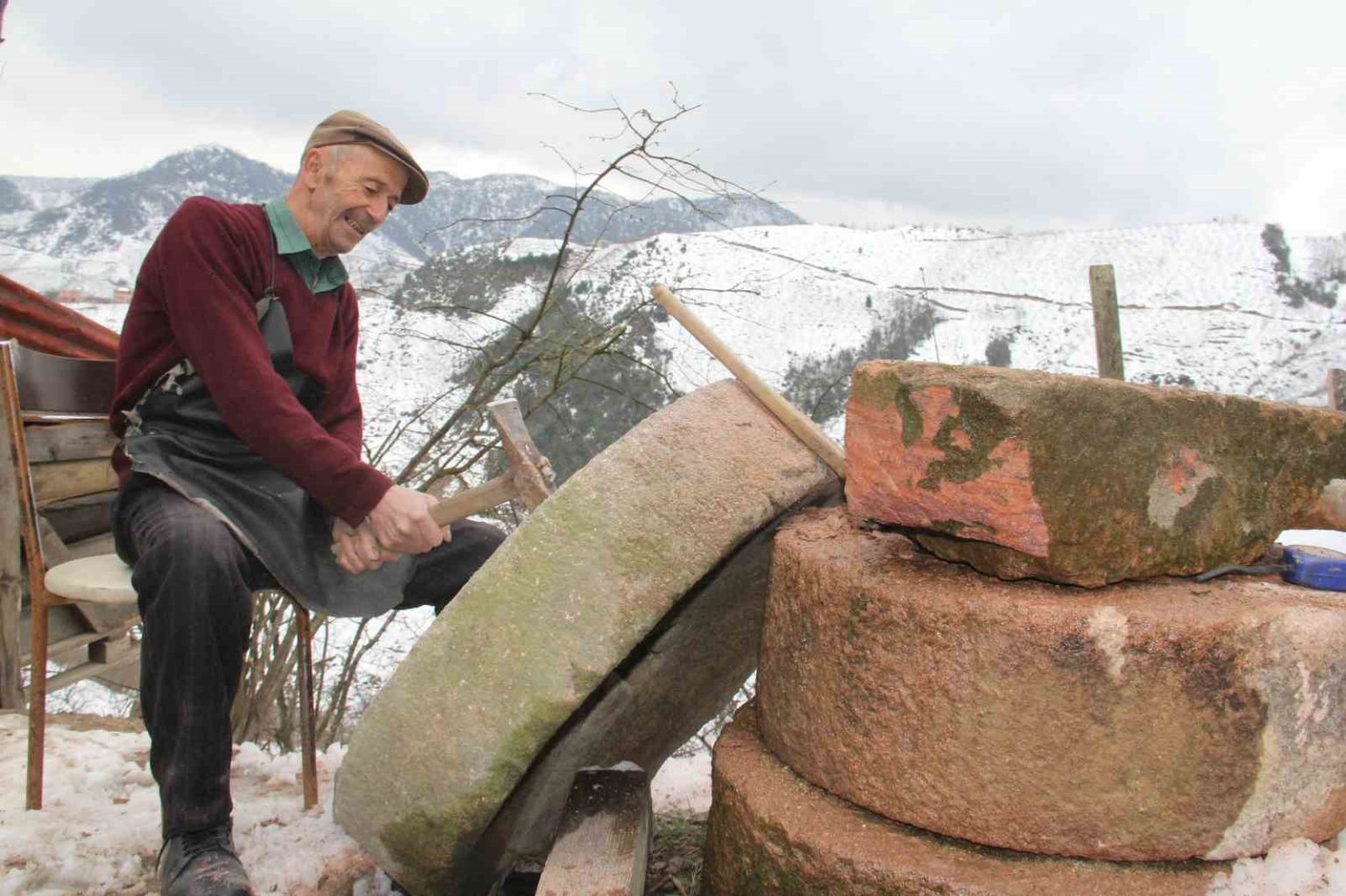 Giresun’un Espiye ilçesine bağlı Soğukpınar beldesinde yaşayan 61 yaşındaki Bayram Karaman, bölgede değirmen taşı yapan son usta olarak mesleğini sürdürmeye çalışıyor. Bir dönem altın çağını yaşayan taş ustalığının bugün yok olma tehlikesiyle karşı karşıya olduğunu belirten Karaman, çırak bulamadığı için mesleğin kendisiyle birlikte bitebileceğini ifade etti.