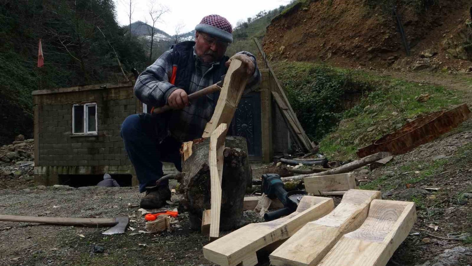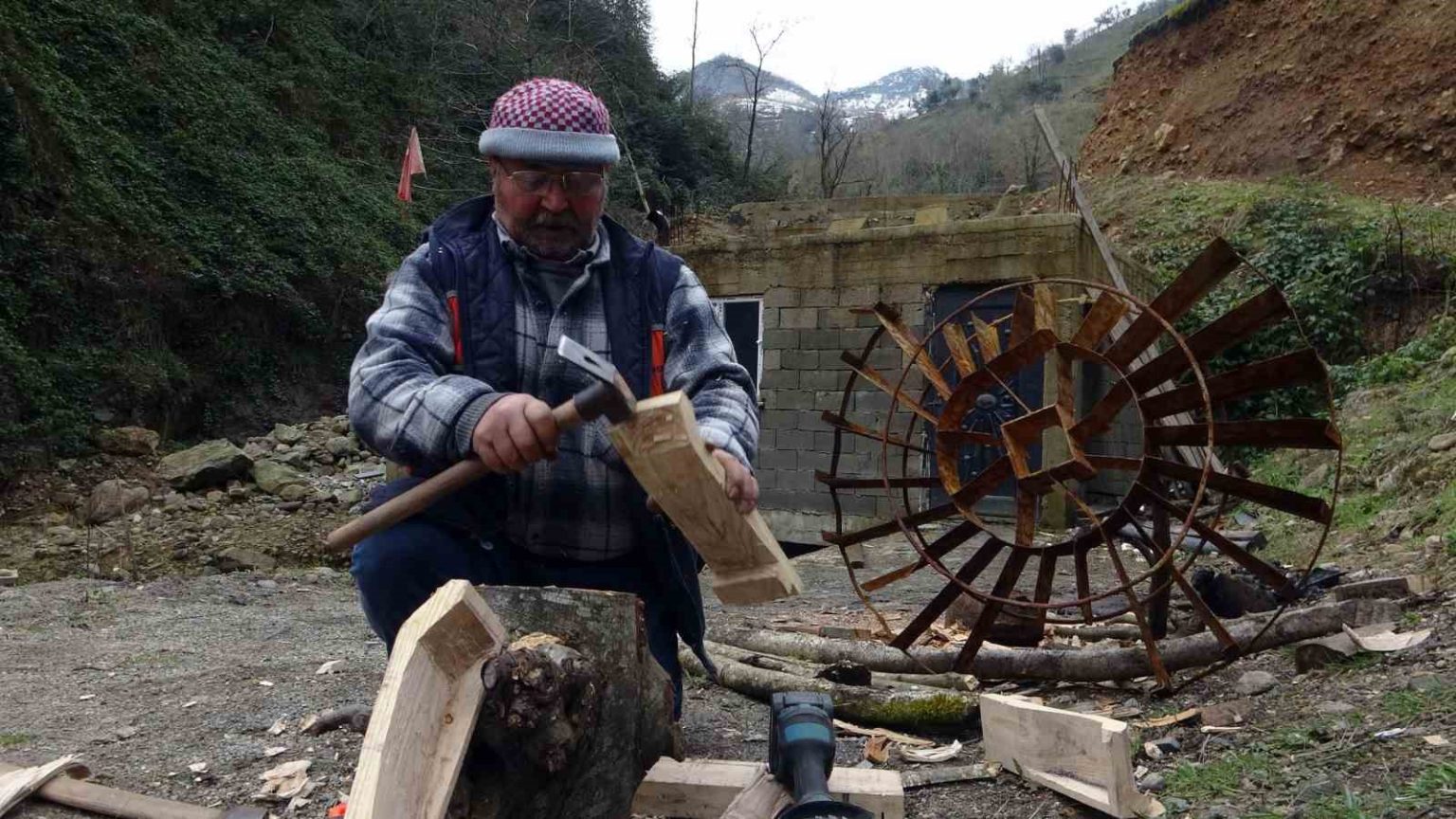 Giresun’un Espiye ilçesine bağlı Soğukpınar Beldesi’nde yaşayan 66 yaşındaki Yaşar Yılmaz, su değirmeni çarkı yapan son ustalardan biri olarak mesleğini sürdürmeye çalışıyor. Köy değirmenlerinin bulunduğu Kızılkaya deresi üzerindeki değirmende demir çarkların kısa sürede paslanıp yıpranması üzerine yeniden ahşap çark yapımına yönelen Yılmaz, hem kendi köyünde hem de çevre köylerdeki değirmenler için çark yapıyor.
