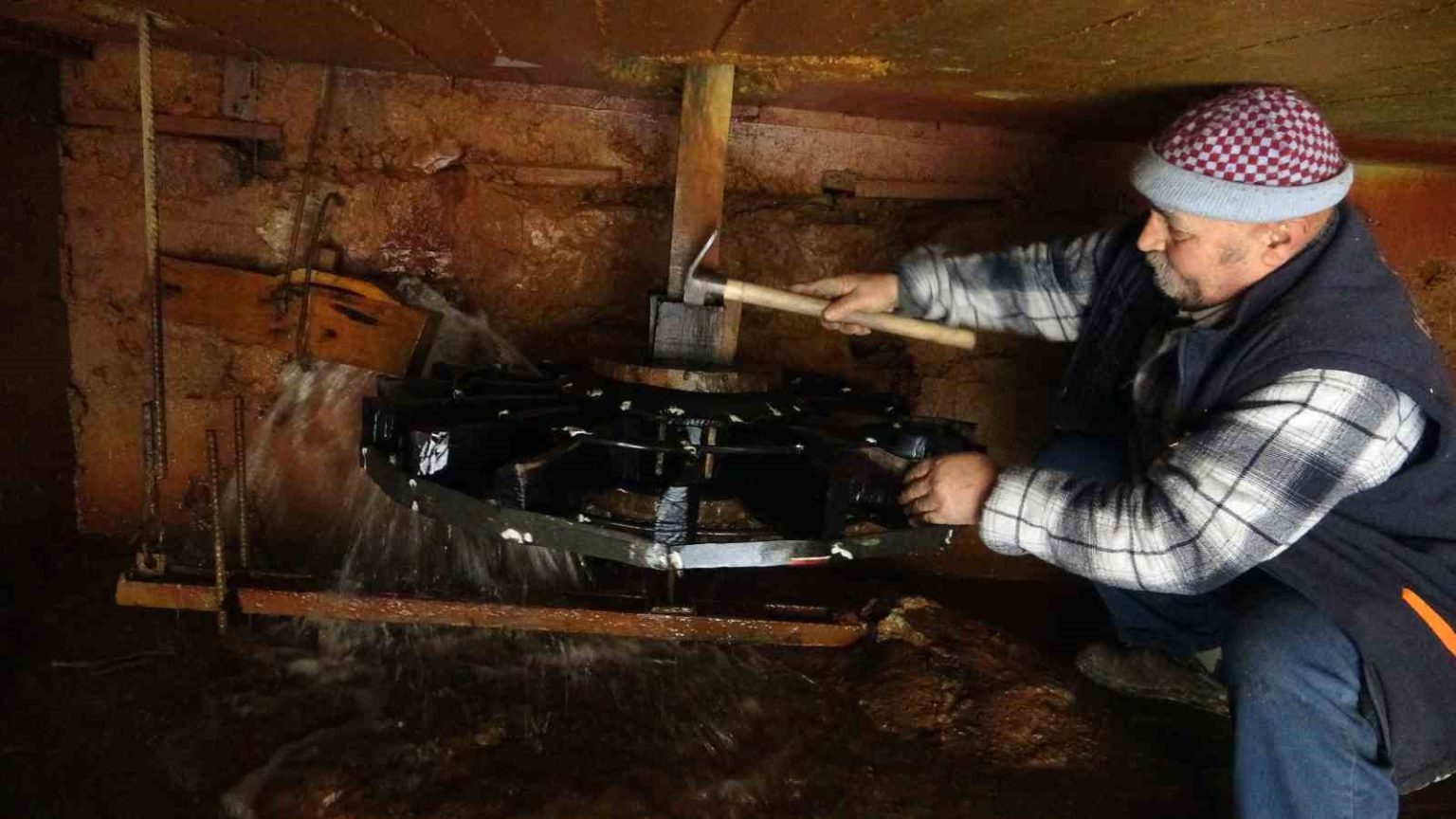 Bakırlı su demiri çürüttü, ahşap çark değirmeni yeniden döndürdü