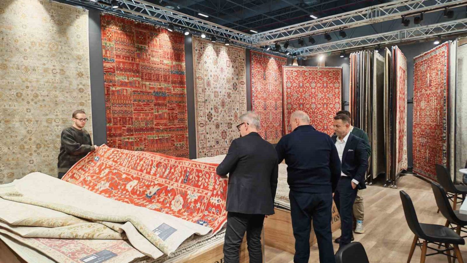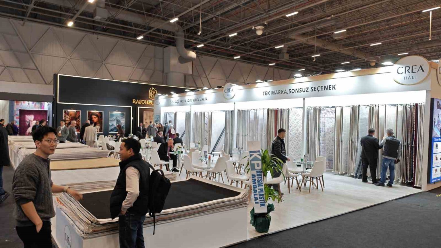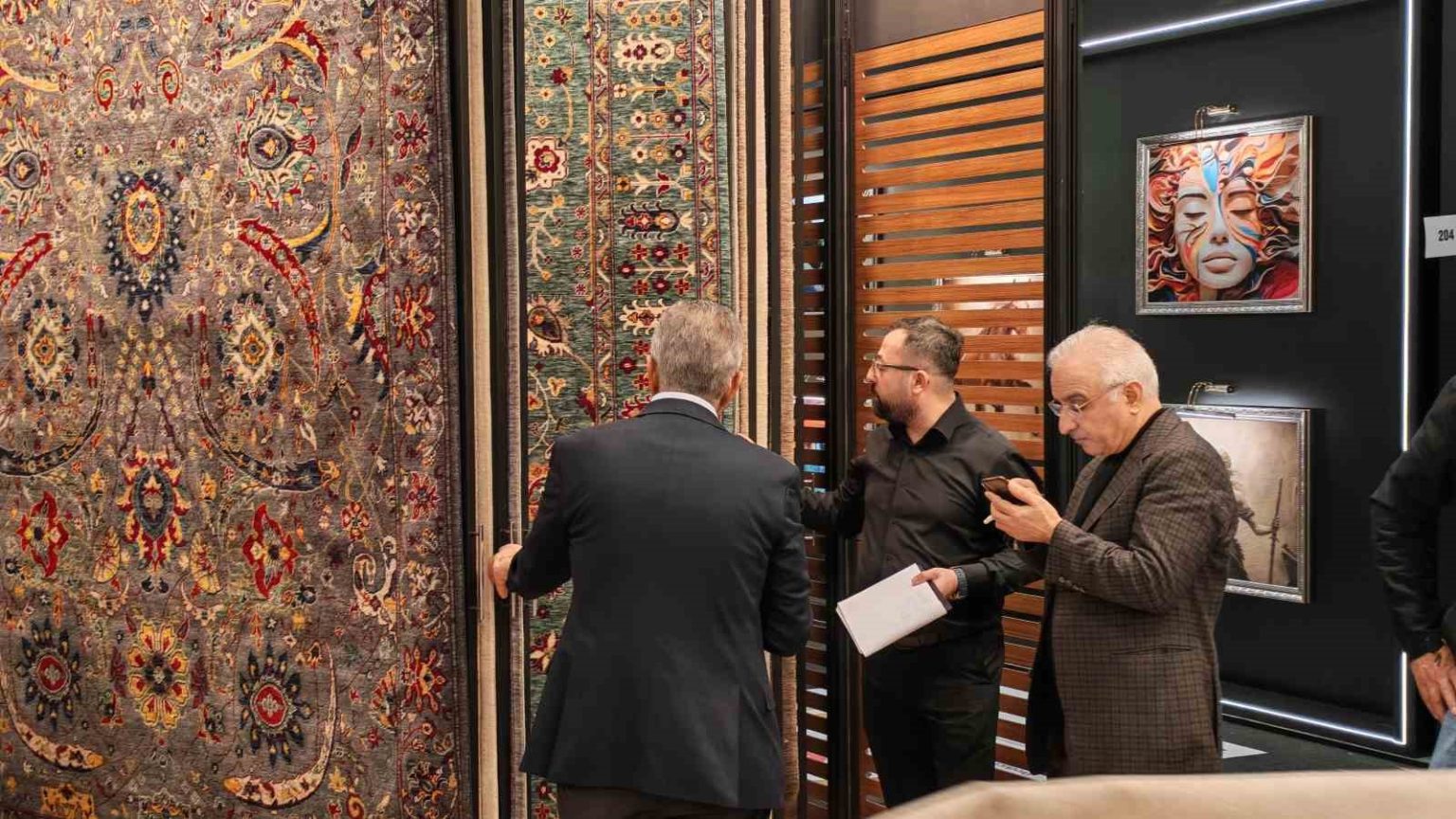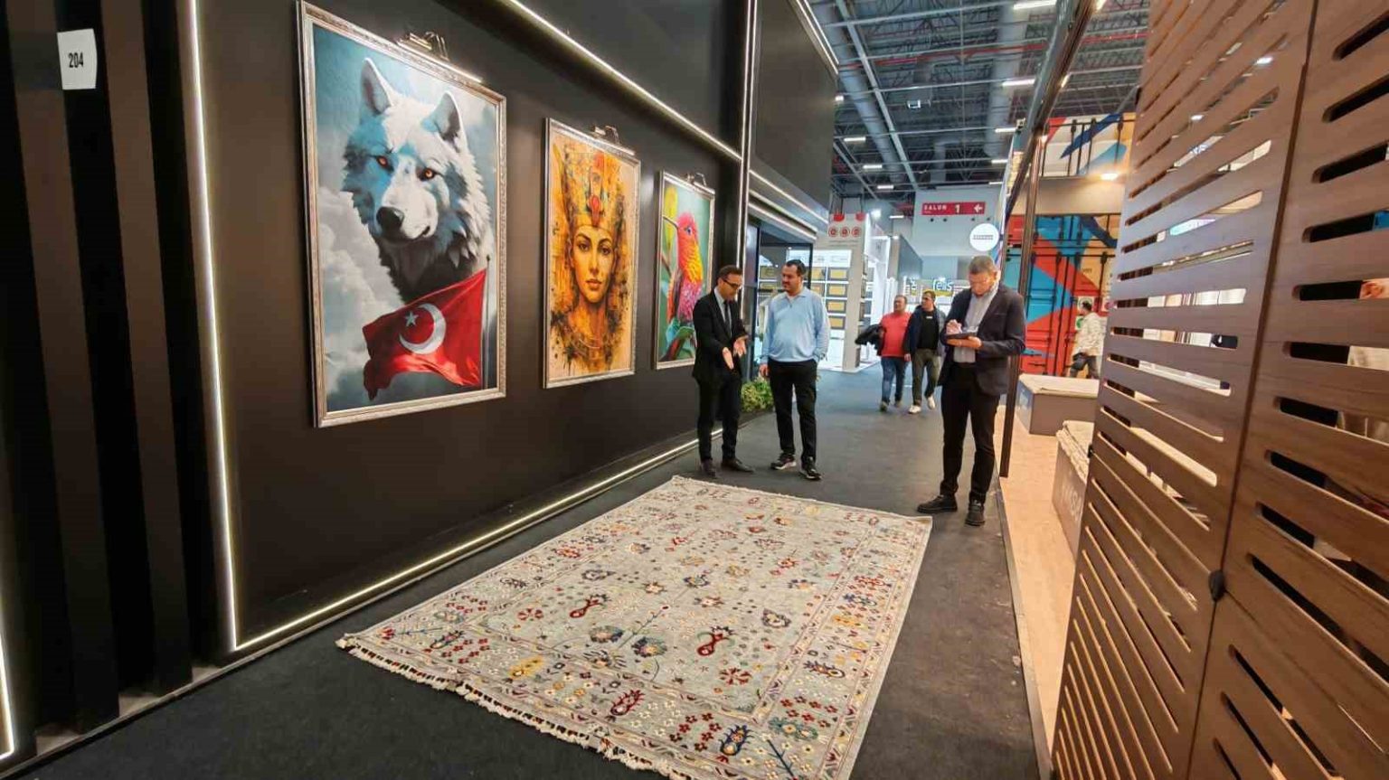 Demirci halıları; yanmaz özelliği, uzun ömürlü yapısı ve camilerin mimari dokusuna uygun özel ölçü ve desen çalışmalarıyla dikkat çekiyor. Fuara Türkiye’nin farklı illerinin yanı sıra çok sayıda yabancı ülkeden sektör temsilcileri ve ziyaretçiler katılıyor.