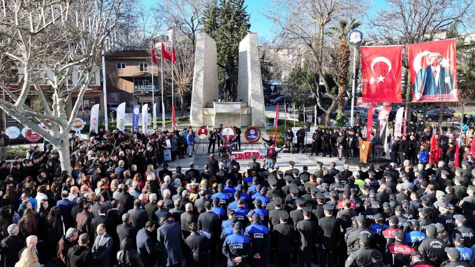 Törende konuşan Denizli Büyükşehir Belediye Başkanı Bülent Nuri Çavuşoğlu, Atatürk’ün Denizli ziyaretinin yalnızca bir tarih değil, aynı zamanda Cumhuriyet’in geleceğe uzanan yolculuğunun simgesi olduğunu vurguladı. Başkan Çavuşoğlu, “Bugün sadece Gazi Mustafa Kemal Atatürk’ün şehrimize gelişinin yıl dönümünü değil, onun açtığı ufku, ilke ve devrimlerini ve Cumhuriyet’in aydınlık geleceğini birlikte anıyoruz. O zor şartlar altında ‘ben’ değil ‘biz’ diyerek yola çıkanların fedakârlıkları sayesinde bugün bu bayrağın altında özgürce yaşıyoruz” dedi.