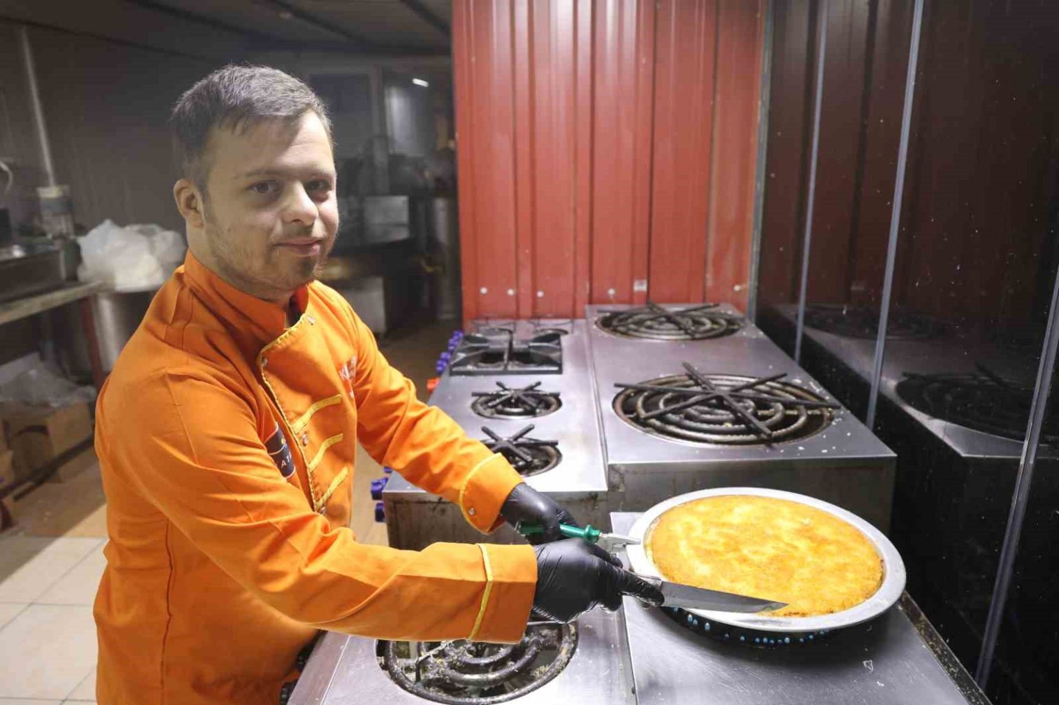 HATAY (İHA) – Hatay’da yaşayan down sendromlu Mehmet Doğru, 6 ay önce çırak olarak başladığı künefecide kendini geliştirerek künefe yapmayı öğrendi. Ustası Müslüm Günal’ın öğrettikleriyle dünyanın en iyi tatlısı olan Antakya künefesini yapmayı başaran Doğru’nun kendine özel müşterileri bulunuyor.