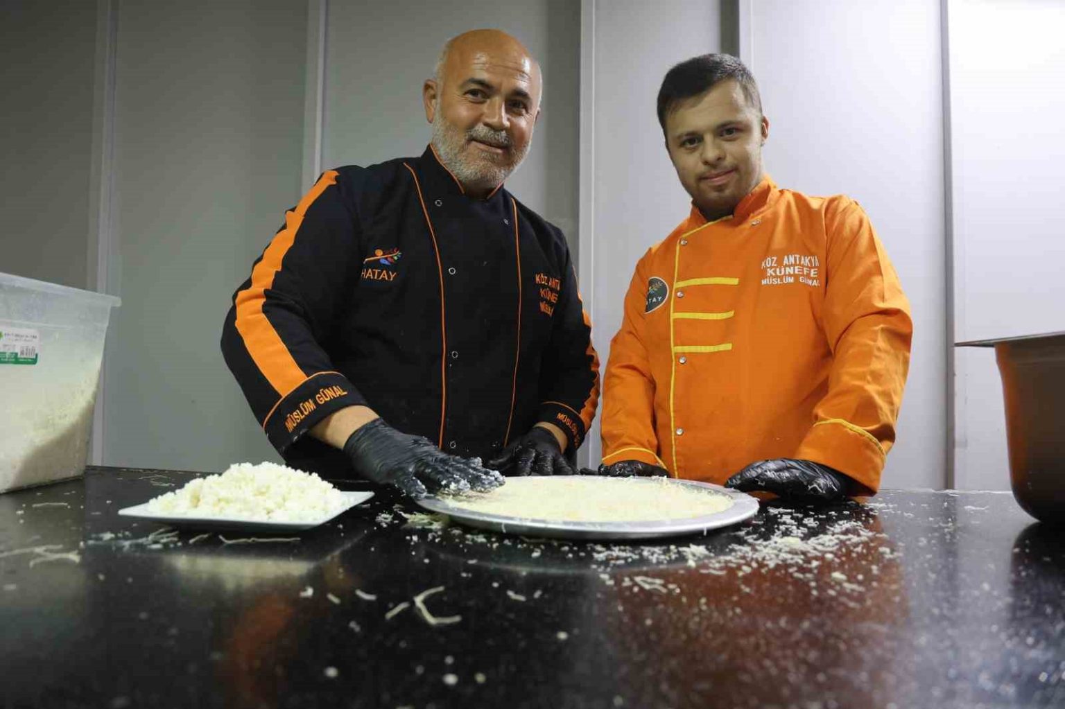 Down sendromlu Mehmet’in yaklaşık 6 aydır yanında çıraklık yaptığını söyleyen künefe ustası Müslüm Günal, “Ben yaklaşık 20 yıldır künefe ustasıyım ve 15 yıldır ise işletme sahibiyim. Künefe yapmayı aileden öğrendim. Künefenin içinde; kadayıf, yöreye ait tuzsuz peynir ve tereyağı kullanılır. Künefe, dünyanın en iyi tatlısı seçildi. Bu da bizim için gurur vericiydi, dünyanın en iyi tatlısı künefedir. Mehmet 21 yaşında down sendromludur ve aynı zamanda benim köylümdür. Her gün künefe yemeye yanıma gelirdi. Mehmet’i işe alarak künefe ustası yapmaya karar verdik. Mehmet, yaklaşık 6 aydır künefe yapmayı öğreniyor ve kendisinin özel müşterileri var. Hatay, gastronomi şehridir. Künefemiz zaten coğrafi tescil aldı. Künefe, 2025 yılının en iyi tatlısı seçildi. Bütün insanları Hatay’a gelip künefe yemeye davet ediyoruz. Mehmet ustanın ellerinden dünyanın en iyi tatlısını tatmalarını istiyoruz” ifadelerini kullandı.