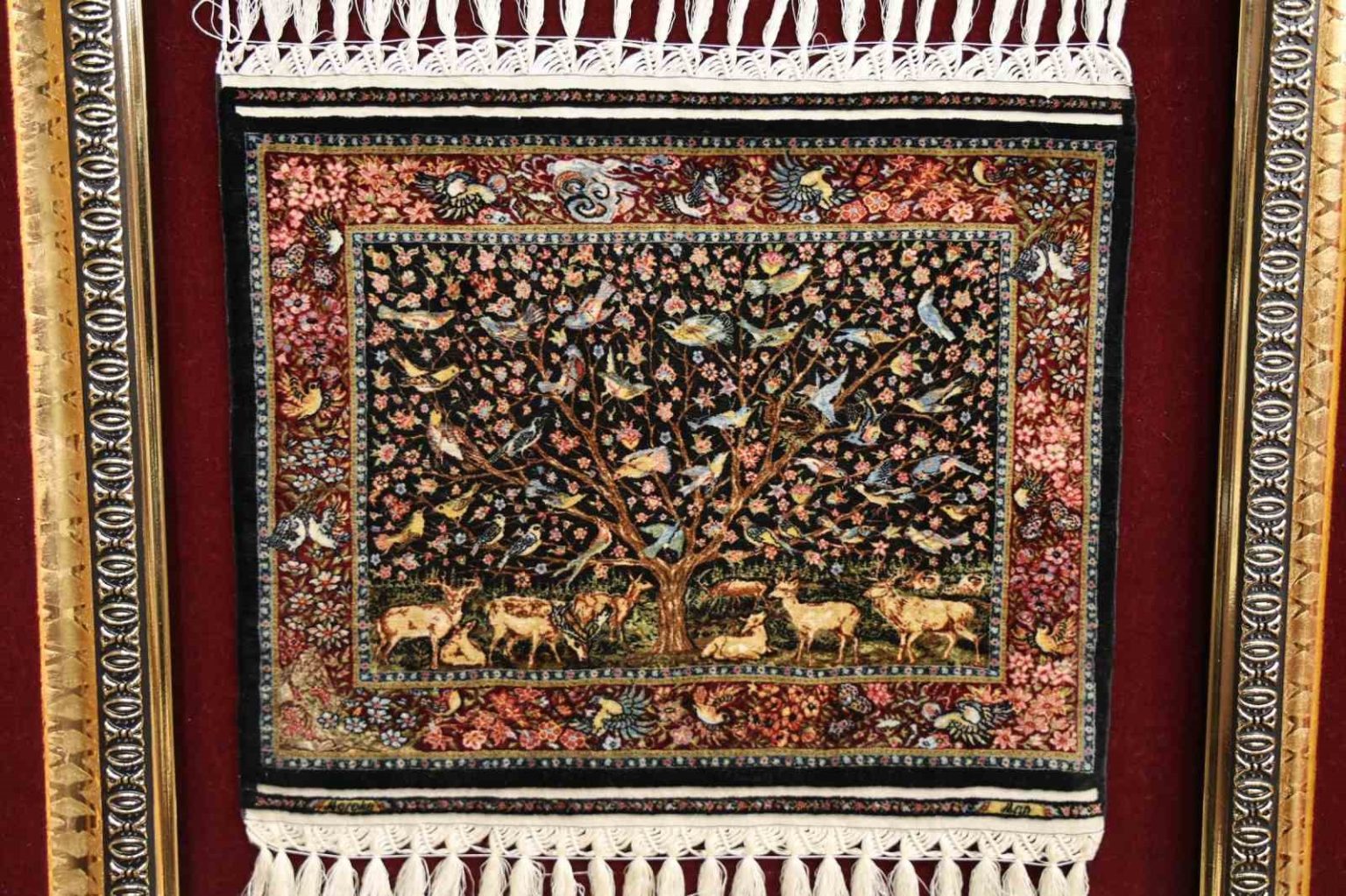 Halının deseninde sonsuzluğu simgeleyen ’Hayat Ağacı’ teması yer alıyor. Kökeni Orta Asya’ya dayanan ve zamanla İskandinav mitolojisi ile Altay Şamanizmi gibi farklı kültürlerde de yer bulan bu motif, esere zamansız bir anlam kazandırdı. Desende ağaç figürünün yanı sıra hayvanlar, kuşlar ve bitkiler büyük bir incelikle işlendi. Her detayın canlı ve gerçekçi bir biçimde tasarlandığı halıda hakiki Bursa ipeği kullanıldı. 5 yıllık emeğin, 150 yıllık bir geleneğin ve yüksek bir teknik ustalığın ürünü olan bu özel halının maddi bir değerle ölçülemeyeceği, bu nedenle eserin ’paha biçilemez’ olarak nitelendirildiği ifade edildi.