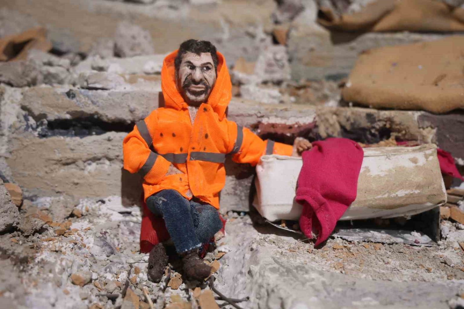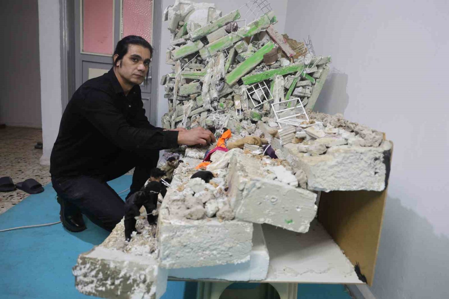 Hatay’da asrın felaketinde kız kardeşini kaybeden ve iki çocuk babası olan 47 yaşındaki Mehmet Kocaman, Kahramanmaraş’ta depremde enkaz altında kalan evladının elinden tutan ve bir an kızının elini bırakmayan Mesut Hançer’den etkilenerek 3 ay süren çalışmayla deprem minyatürü yaptı.