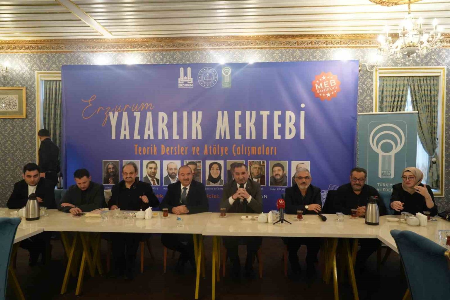Erzurum Büyükşehir Belediyesi Müceldili Konağında yapılan törenle Yazarlık Mektebini başarıyla tamamlayan katılımcılara sertifikaları verildi. Törene Erzurum Büyükşehir Belediye Başkan Vekili Mehmet Akarsu, Erzurum Büyükşehir Belediyesi Kültür Daire Başkanı Ergün Engin, TDED Erzurum Şube Başkanı Murat Ertaş, TDED Erzurum Yönetim kurulu Üyeleri, Yazarlık Mektebi’nde ders veren eğitimciler ve sertifika almaya hak kazanan kursiyerler katıldı. Ekim ayında başlayan Yazarlık Mektebi, Erzurum Büyükşehir Belediyesi Dil ve Edebiyat Konağı’nda her cumartesi yapılan derslerle bu hafta sonu tamamlandı. Başvuran 170 kişiden mülakatla 28 kişi Yazarlık Mektebi’ne başvurdu ve programı başarıyla tamamlayan 22 kişi sertifika almaya hak kazandı.