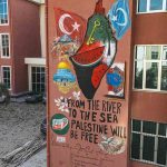 Aydın Adnan Menderes Üniversitesi’nde öğrenciler, Gazze’ye yönelik saldırıları protesto etmek ve Filistin halkına destek vermek amacıyla kampüs duvarlarında mural (duvar resmi) çalışması gerçekleştirdi.