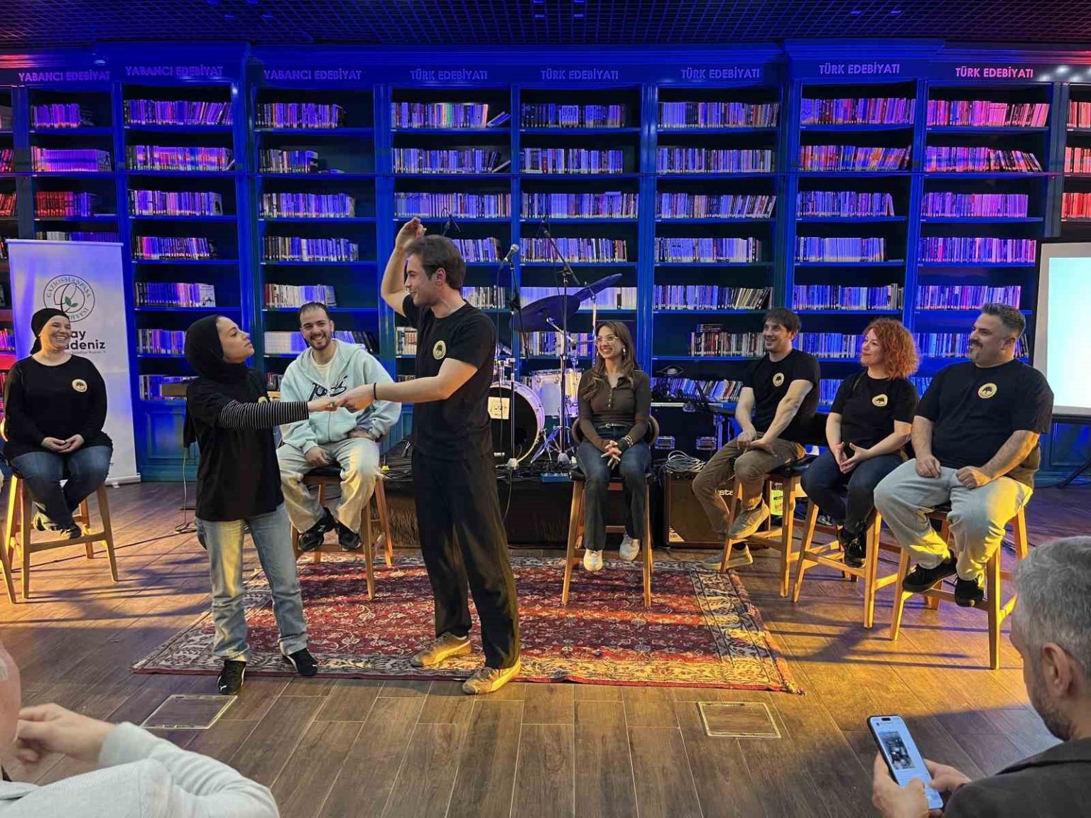 Tiyatro oyuncusu Murat Oğru, “Aslında tiyatroda çok az zamandır varım. 3 yıldır içerisindeyim ama girdim ve bir doğaçlama ekibim oldu. Birçok klasik tiyatro oyununda oynadım. Birçok usta ile çalışma fırsatı buldum. Benim için çok anlamlı bir gün. Bugün bir doğaçlama tiyatro performansı sergileyeceğiz. Bu tiyatro dalı hakkında hiçbir fikri olmayan insanların en azından kafasında bir şey canlanmasını sağlayacağız” şeklinde konuştu.