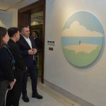 Konuşmaların ardından Başkanvekili Saldız, Acar’a çiçek takdim etti. Toplu fotoğraf çekiminin ardından protokol üyeleri sergideki eserler hakkında sanatçıdan bilgi aldı.