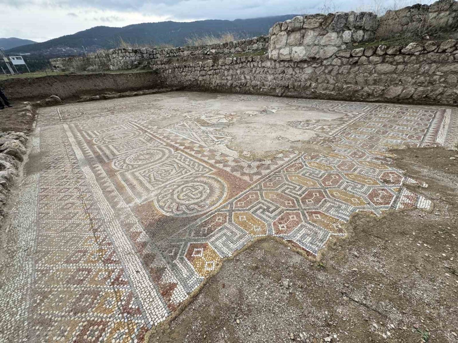 Karabük’ün Eskipazar ilçesindeki Hadrianopolis Antik Kenti’nde sürdürülen kazılarda literatürde bulunmayan motiflere sahip 4. yüzyıl mozaikleri ile bir saray kompleksinin kabul salonu gün yüzüne çıkarıldı.