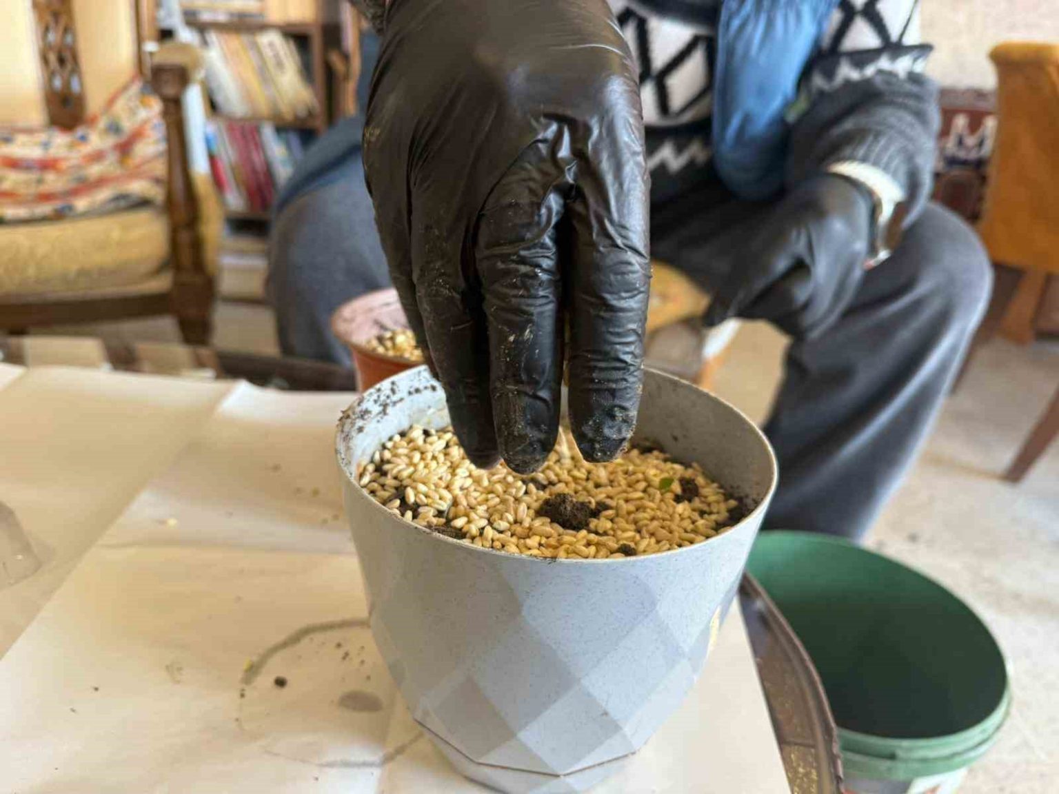 Iğdır’da çay ocağı işleten Harun Cengiz’de baharın, bereketin ve yeniden doğuşun sembolü olan semeni için buğdayları özenle hazırladı. Kaplara toprak ve buğday bırakan Cengiz, Nevruz öncesi yapılan bu hazırlığın eski bir gelenek olduğunu söyleyerek, “Semeni, bölgemizde baharın gelişini, bereketi ve yeniden dirilişi simgeleyen çok eski bir gelenektir. Özellikle Nevruz öncesi buğday taneleri ıslatılıp kaplara yerleştirilerek ekilir. Demin benim yaptığım gibi hazırlanır ve yeşermesi beklenir. Yeşeren semeni, doğanın uyanışını ve yeniden başlangıcı temsil eder. Iğdır’da aileler bu geleneği yaşatmaya devam ediyor. Biz de bu geleneği yaşatıyoruz. Semeni bazen evlerde hazırlanır, bazen de bizim demin hazırladığımız gibi hazırlanır. Bahar bayramında sofralara konulur ve baharın müjdesi olarak görülür. Bu gelenek hem kültürümüzü yaşatıyor hem de birlik ve paylaşma duygumuzu güçlendiriyor” dedi.