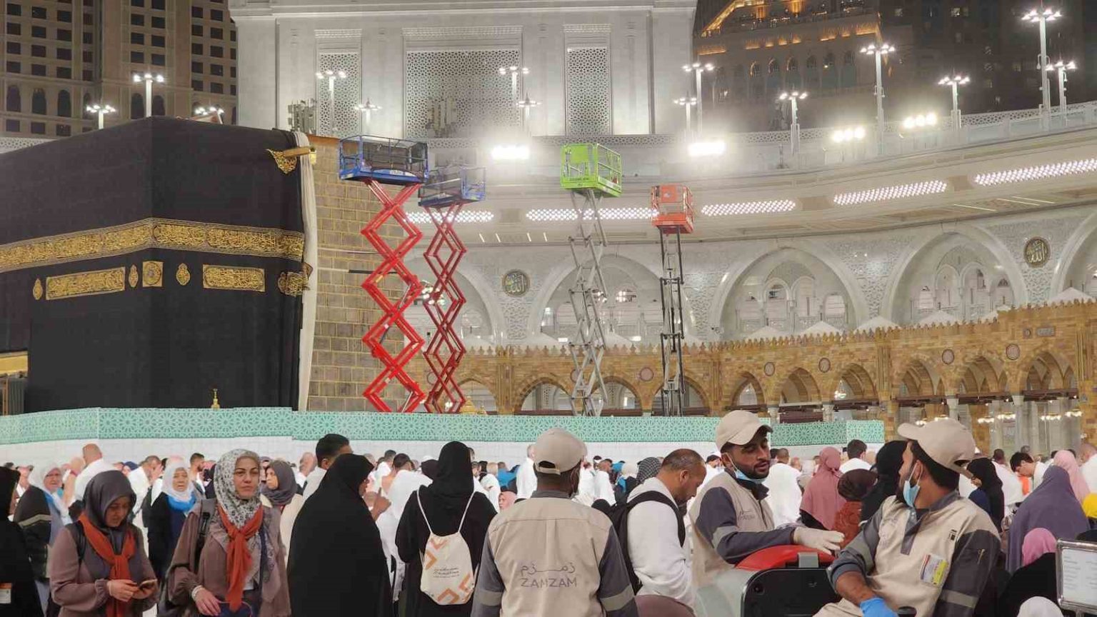 Eskiden hac döneminde değiştirilen Kabe örtüsü, son yıllarda hicri yılbaşı olan 1 Muharrem’de yenileniyor. Bu sene genel tadilatların bitirilmesi hedeflenirken, hac dönemi öncesinde Kabe’i Muazzama’nın örtüsü açılarak, dış duvarlarına da bakım yapıldı. Kurban Bayramı öncesi hacı adayları Mekke’i Mükerreme’ye gelmeden, metaf alanında (tavaf yapılan zemin) paravanlar kurularak Kabe’i Muazzama’nın duvarlarında özel sepetlerle işçiler kontrol ve cilalama yaptılar. Umre vazifesinde olan Türk vatandaşları o anlara hem şahitlik yaptı hem de kayıt altına aldı.