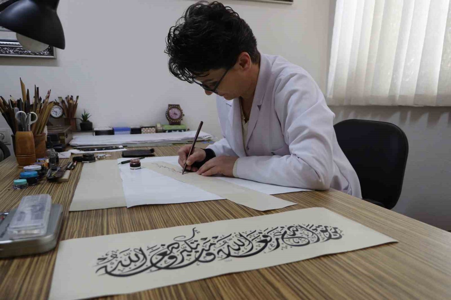 Eskişehir Olgunlaşma Enstitüsünde usta öğretici olarak gelecek nesillere hat sanatını aktarmak için çalışan hattat Serap Tepedelen, kamış kalemle yazdıkları her harfin altın orana bağlı olduğunu ve büyük eserleri yapmanın yaklaşık 4-5 ay emek istediğini söyledi.