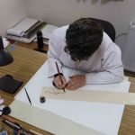 “Her harf altın orana ve ölçülere bağlı olduğu için gözümüze bu kadar hoş, bu kadar güzel geliyor. Eserlerimizi oluştururken ilk olarak nasıl yapacağımızı, hangi yazı çeşidiyle yazacağımızı aklımızda tasavvur ediyoruz. Onu belirledikten sonra istif aşaması var. Bu aşama yazının büyüklüğüne veya içeriğinin genişliğine göre 1-2 hafta sürebiliyor. İstif aşaması çok önemli. Bu aşama tamamlandıktan sonra yazıyı yazmaya başlıyoruz. O da epeyce sürüyor. Kimi yazılarımız 1-2 haftada bitiyor, kimi 1 ay bile sürüyor ama Hilye-i Şerif gibi büyük bir eser ile uğraşıyorsak yaklaşık 4-5 ay gibi bir zaman alabiliyor.”