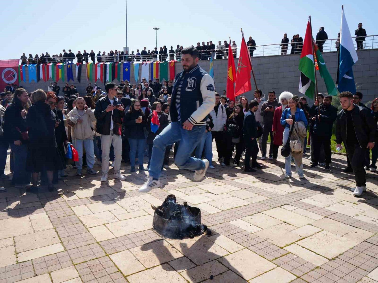 Gösterilerin ardından nevruz ateşi yakıldı. Kastamonu Üniversitesi Rektörü Prof. Dr. Ahmet Hamdi Topal’ın da katılımıyla protokol üyeleri ateşin üzerinden atlayarak baharın gelişini kutladı. Rektör Topal ve beraberindeki heyet örs üzerinde demir dövdü.