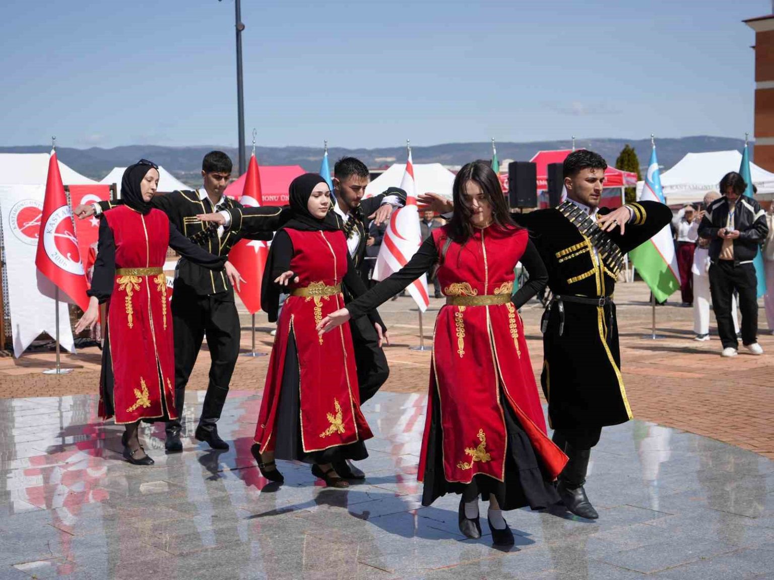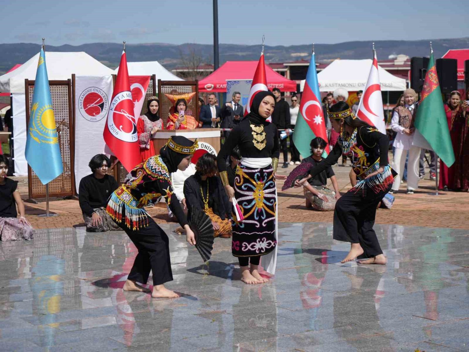 Daha sonra uluslararası öğrenciler sahne alarak kültürel zenginliği yansıtan gösteriler sundu. Kazakistanlı öğrencilerin “Dombra” performansı büyük beğeni toplarken, Azerbaycanlı öğrencilerin dans gösterisi izleyicilerden alkış aldı. Endonezyalı ve Filipinli öğrencilerin sergilediği geleneksel danslar programa renk kattı. Son olarak Raksan Halk Dansları Topluluğu’nun halk oyunları gösterisi ise katılımcılara unutulmaz anlar yaşattı.
