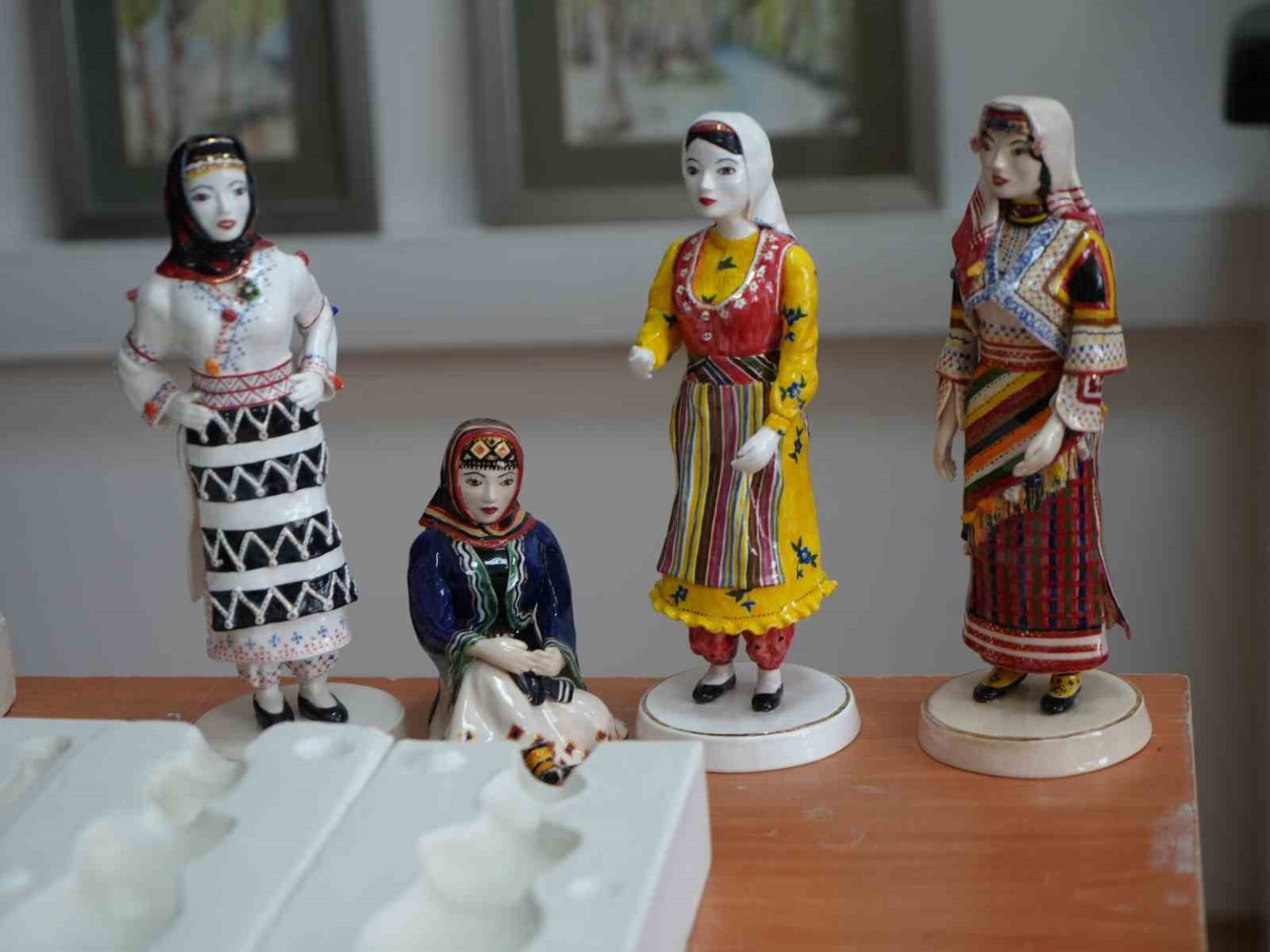 Yaklaşık 28 santimetre boyutundaki biblo, Kastamonu’nun Azdavay ve Pınarbaşı ilçelerine özgü yöresel kadın giysilerini minyatür ölçekte başarılı bir şekilde yansıtıyor. Biblo tasarımında şal desenli başörtüsü, işlemeli cepken, entari ve geleneksel önlük gibi unsurlar ön plana çıkarken, figür, seramik formunda bir kaide üzerinde ayakta duran kadın figürü olarak tasarlandı. El ve kalıpta biçimlendirme teknikleriyle üretilen biblo, sır altı dekor tekniğiyle hazırlanarak bin 50 derecede sırlı pişirime tabi tutuluyor. Ardından sır üzerine 750 derecede altın yaldız dekor uygulanarak son hali veriliyor. Sanatsal detayların titizlikle işlendiği bebekler hem dekoratif obje hem de kültürel temsil aracı olarak öne çıkıyor.