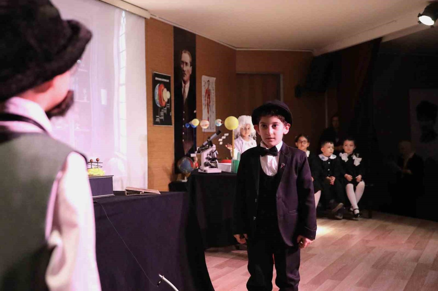 Fen ve Doğa Atölyeleri içeriklerinin drama yoluyla ele alındığı oyunda, bilim dünyasına yön veren önemli isimler canlandırılarak keşiflerin izi sürüldü. Hezarfen Ahmed Çelebi’nin uçuş denemelerinden Wright Kardeşler’in havacılık alanındaki çalışmalarına, Isaac Newton’un yer çekimi buluşundan Galileo Galilei ve Uluğ Bey’in gökyüzüne dair gözlemlerine kadar birçok bilimsel yolculuk sahneye taşındı. Alexander Graham Bell tarafından telefonun icadı, Marie Curie’nin bilimsel çalışmaları ve Arşimet’in suyun kaldırma kuvvetine dair keşfi de oyunun dikkat çeken bölümleri arasında yer aldı.