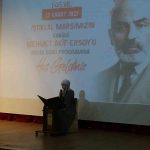 Mehmet Akif Ersoy’u anma ve İstiklal Marşı’nın kabulünün 105. yıl dönümü dolayısıyla Alaeddin Yavaşça Kültür Merkezi Konferans Salonu’nda gerçekleştirilen program, saygı duruşu ve İstiklal Marşı’nın okunmasıyla başladı. Programda bir öğrenci tarafından Kur’an-ı Kerim okundu.