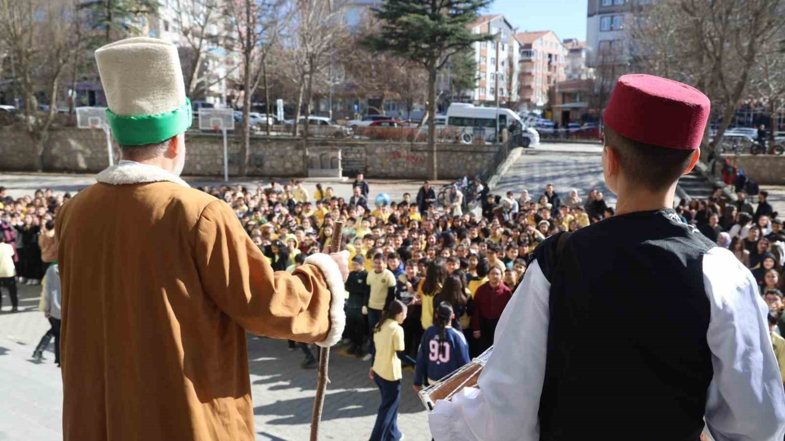 Ahi Evran kılığında öğrencilere hitap eden Oktay Dinçer ise Ramazan ayının sevincini çocuklarla paylaştıklarını belirterek, gönüllü olarak okullarda yöresel kıyafetlerle tanıtım ve anlatım faaliyetleri gerçekleştirdiklerini söyledi.