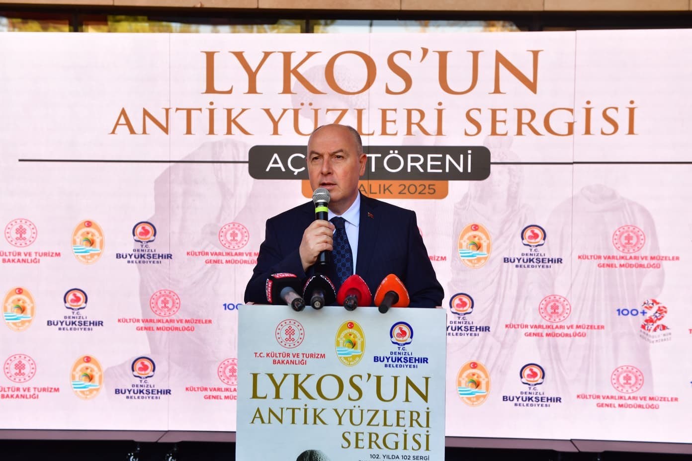 Kültür ve Turizm Bakanlığı’nın Cumhuriyet’in 102’nci yılı kapsamında Türkiye genelinde düzenlediği ’102 Sergi’ projesinin finali olan antik kentlerdeki kazılarda gün yüzüne çıkarılan 52 eserin yer aldığı ’Lykos’un Antik Yüzleri’ sergisi, Denizli’de törenle açıldı.