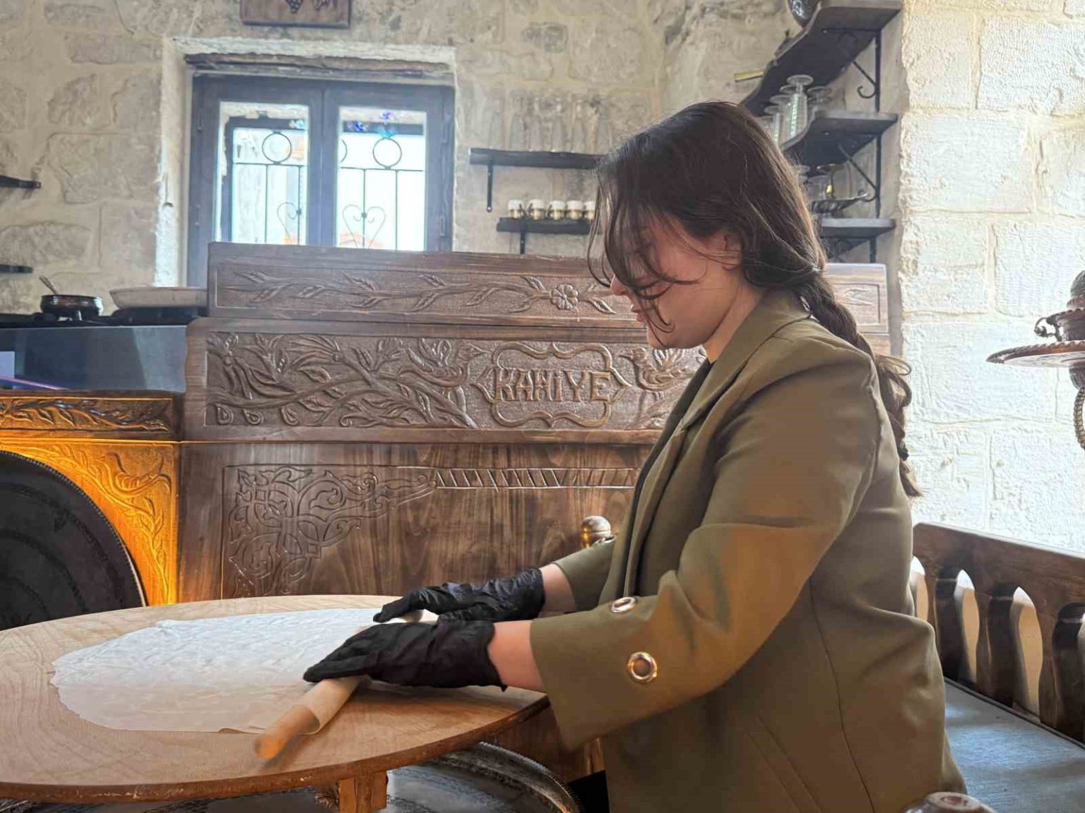 Tatlıyı geleneksel yöntemlerle hazırladıklarını belirten Özer, ustalar tarafından hamurun annelerin yaptığı gibi el açması olarak hazırlandığını ifade etti.