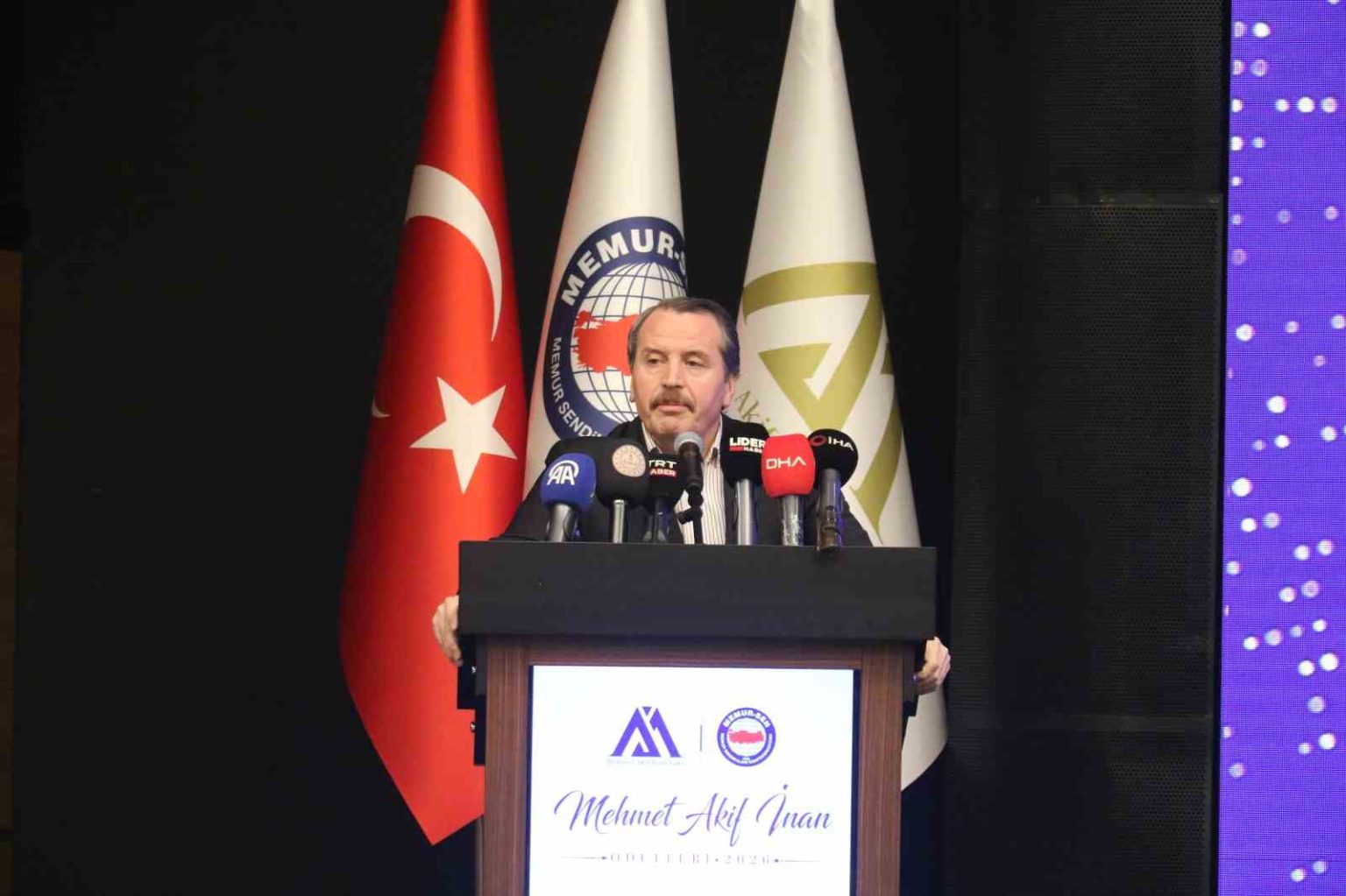 Mehmet Akif İnan Vakfı ve Memur-Sen iş birliğiyle bu yıl 7’ncisi düzenlenen Mehmet Akif İnan Ödül Töreni programı, edebiyat, düşünce ve sendikal mücadele alanlarında önemli katkılar sunan isimleri bir araya getirdi. Programda, Türk şair, yazar, araştırmacı ve Memur-Sen’in kurucusu Mehmet Akif İnan’ın fikir dünyasını, mücadelesini ve bıraktığı mirası yaşatmak amacıyla çeşitli kategorilerde ödüller takdim edildi. Program kapsamında Mehmet Akif İnan’ın düşünce hayatına ve sendikal mücadele anlayışına vurgu yapıldı.