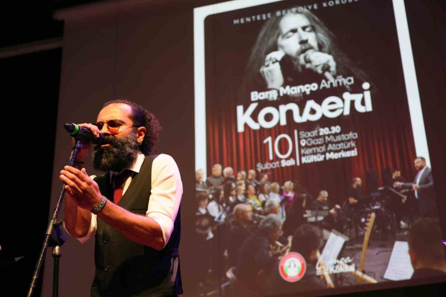 Şef Hamdi Demirtaş yönetimindeki Menteşe Belediyesi Halk Korosu, sanatçının 7’den 70’e herkesin hafızasına kazınan “Gülpembe”, “Dağlar Dağlar”, “Aynalı Kemer” ve “Arkadaşım Eşek” gibi klasiklerini çok sesli olarak yorumladı.